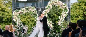 Для церемонии Саманта выбрала шелковое платье Mikado и фату с узором в виде лиан и цветов. Жених надел черный смокинг от Dolce & Gabbana.