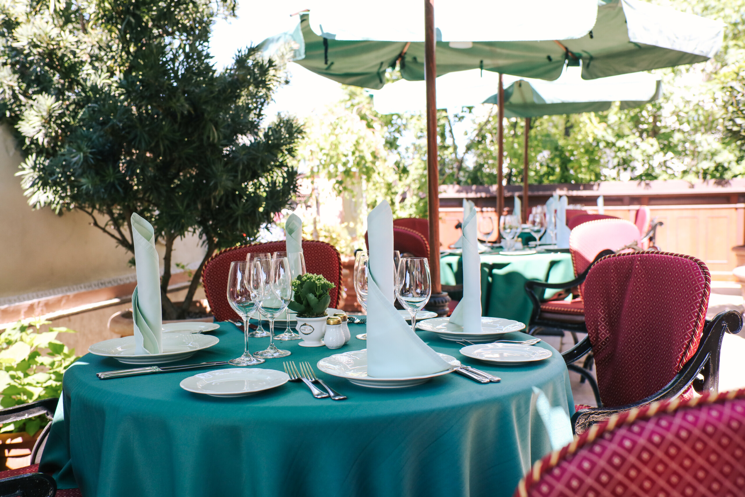 На Кутузовском проспекте расположена просторная терраса Maroon с выраженными мотивами Востока в дизайне, деревянной мебелью, ярким текстилем и обилием зелени: высокие оливковые деревья и объемные кашпо с охапками цветов – словно попадаешь в восточный сад. Кстати, с запуском веранды вернулись ежедневные колоритные ближневосточные завтраки, которое гости смогут попробовать с 10 до 16. Отправьте в гастрономическое путешествие, не покидая Москвы.