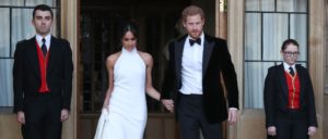 После официальной церемонии сказка принца Гарри и Меган Маркл не закончилась. Молодожены отправились на вечерний прием, организованный в их честь принцем Чарльзом, на небесно-голубом кабриолете Jaguar 1968 года. Меган появилась в великолепном атласном платье с облегающим силуэтом британского бренда Stella McCartney. По традиции было и что-то голубое (помимо роскошного автомобиля) — подарок Меган от Гарри на свадьбу. Это кольцо с голубым аквамарином, принадлежавшее принцессе Диане. Роскошный подарок!