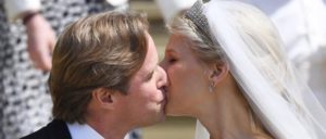 Габриэлла надела и тиару, которая принадлежала ее бабушке — принцессе Марине Греческой и Датской, герцогине Кентской. Томас Кингстон был в черном смокинге, полосатых брюках, бежевой жилетке и голубой рубашке с розовым галстуком.
