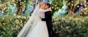 Кьяра Ферраньи — итальянский модный блогер и основательница именного бренда, известная далеко за пределами родины. Ее свадьбы с популярным рэпером Fedez стала своеобразным эталоном церемонии представителей поп-культуры для миллениалов и следующих поколений. Церемония пары проходила на Сицилии, куда за несколько дней до торжества гостей доставил частный кастомизированный самолет — с именами жениха и невесты. А уже у трапа гостей встречали ростовые куклы в виде Кьяры и Fedez. Модный дом Dior специально по заказу Кьяры сшил серию свадебных платьев: белое кружевное для официальной части, бежевое корсетное для вечеринки и его мини версия для зажигательных танцев. Ближе к вечеру гостей ждал еще один сюрприз — масштабный фейерверк, который можно было наблюдать из парка развлечений, который тоже оказался в доступе для гостей.