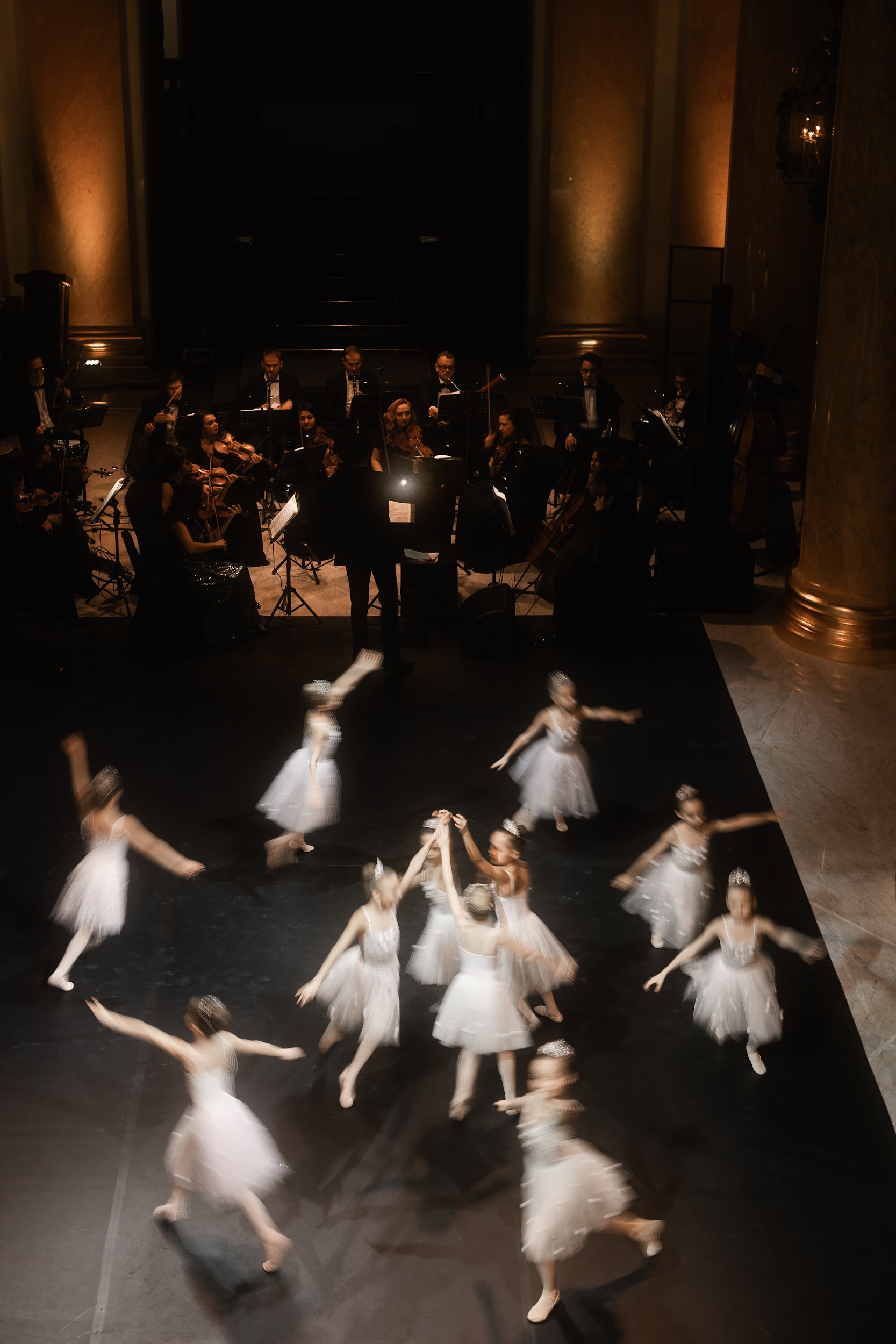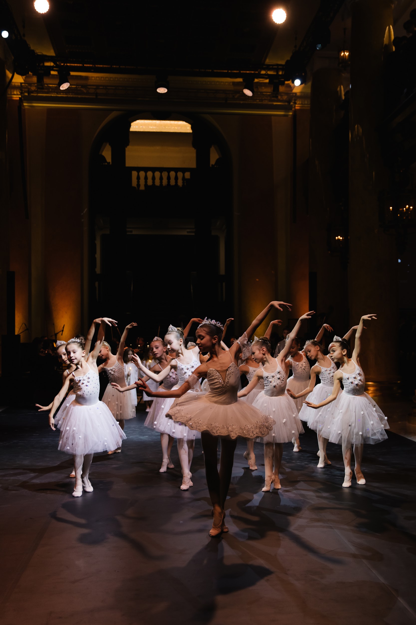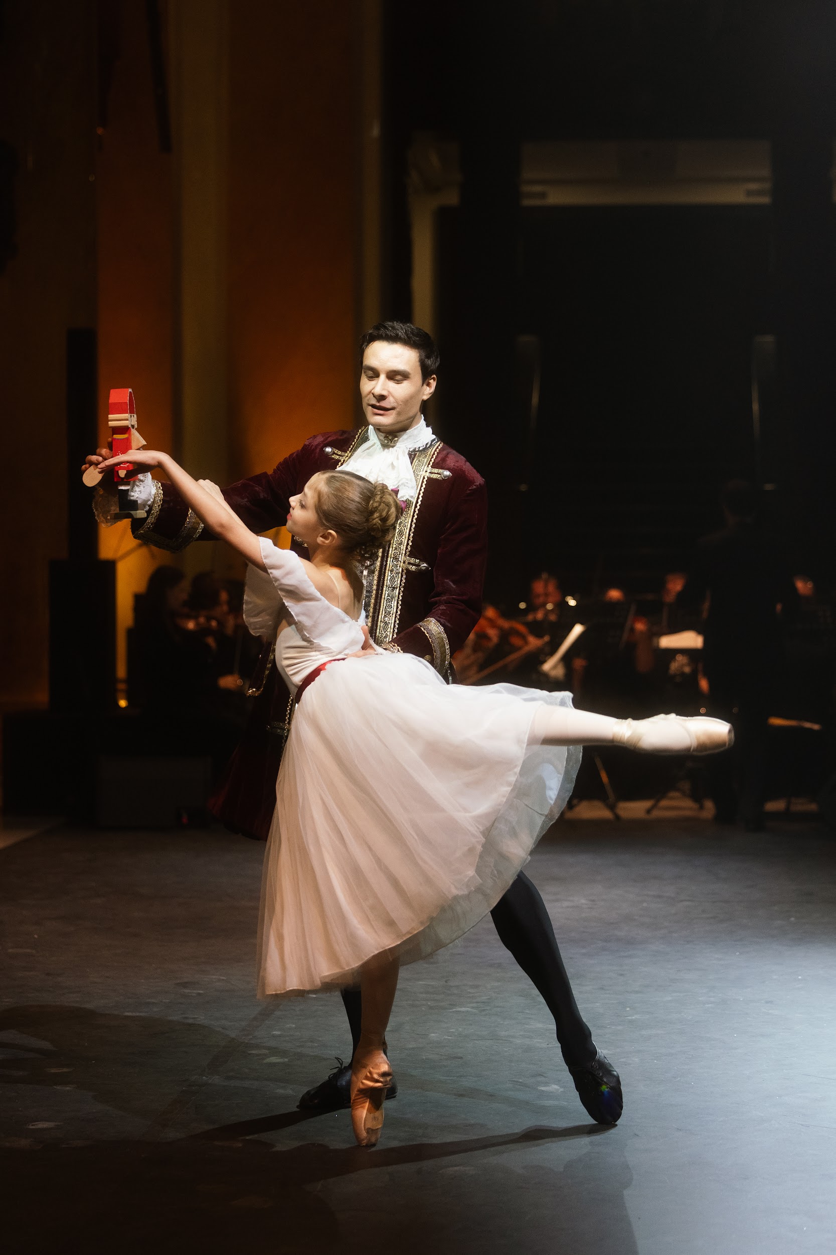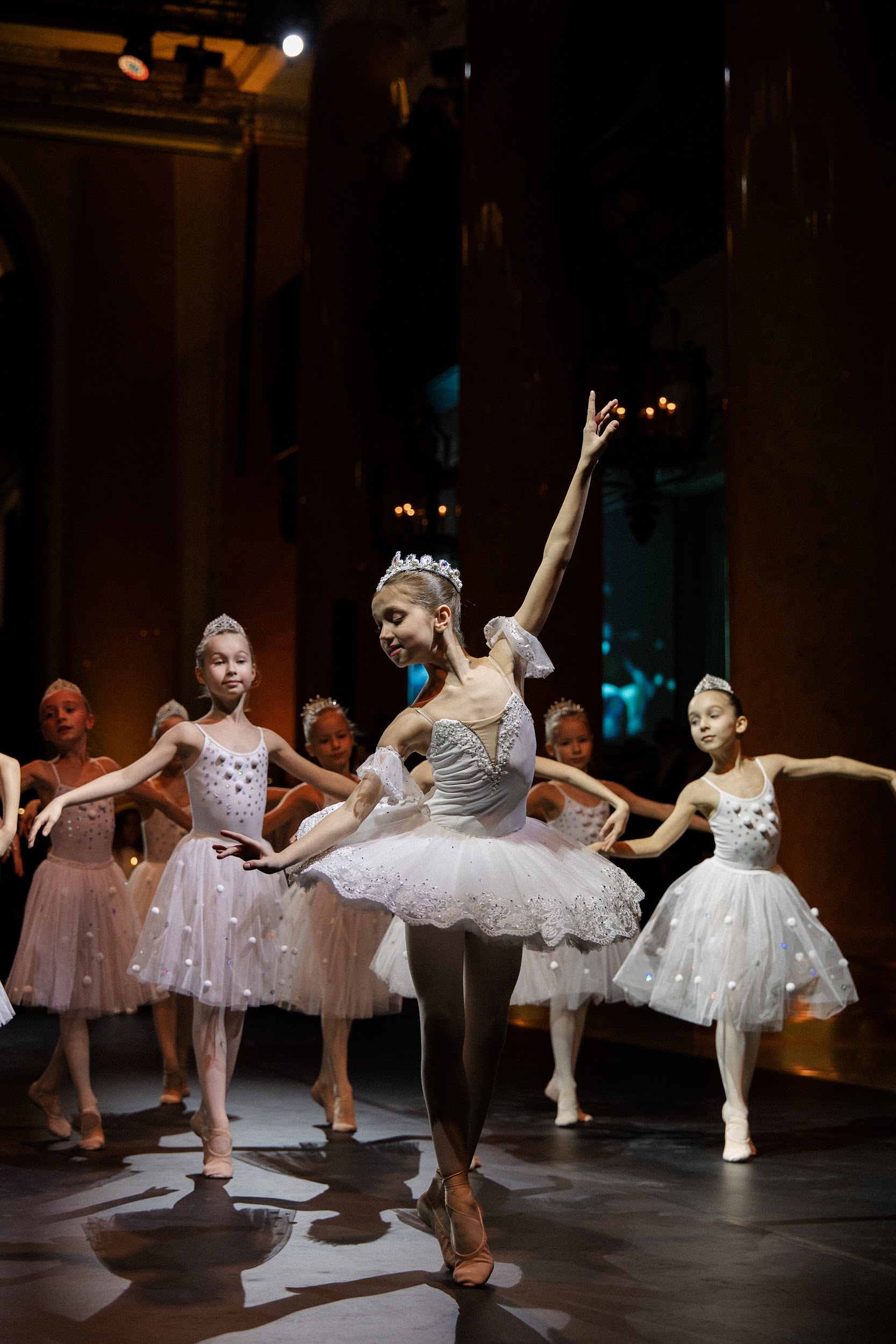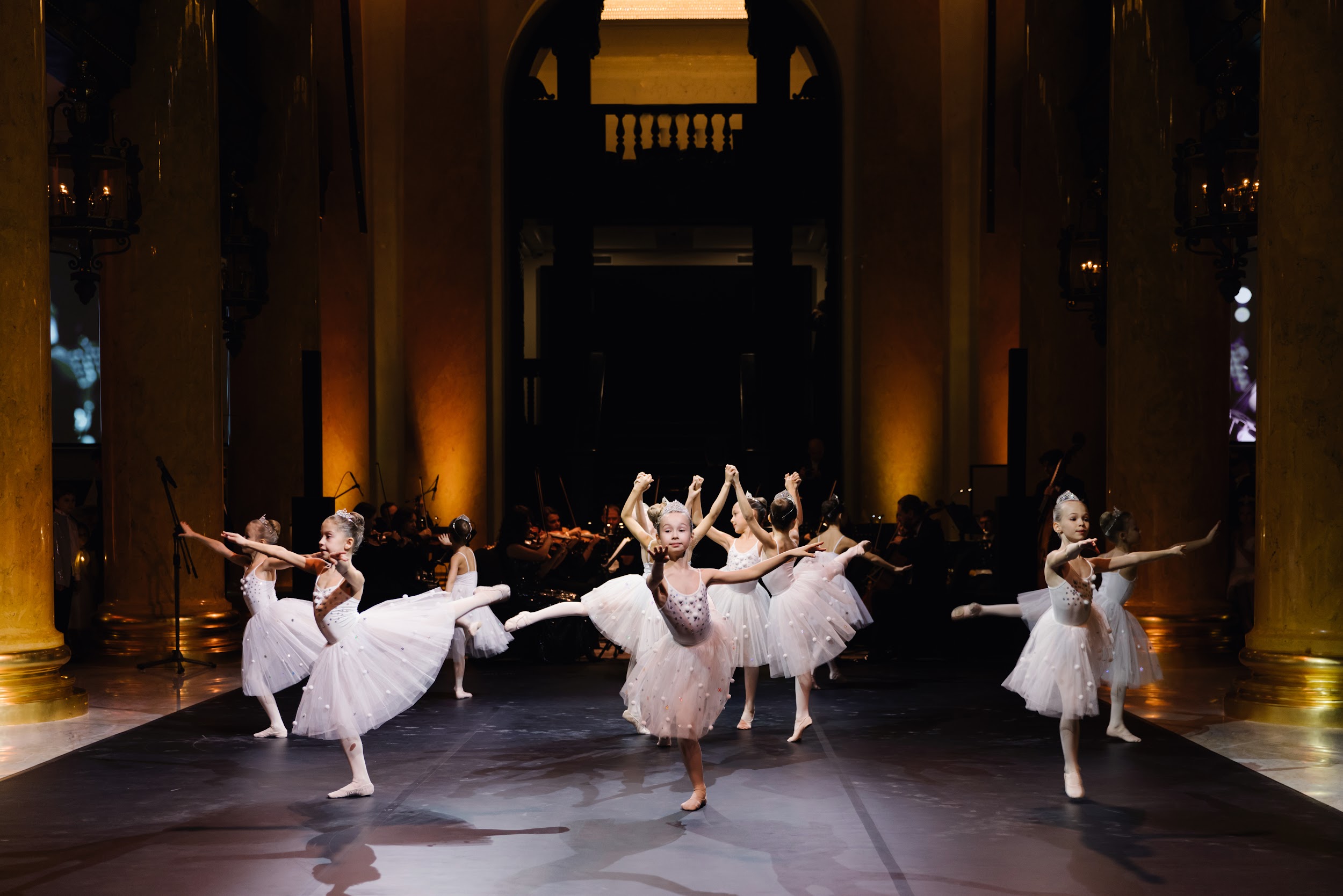 Все началось с хореографического номера-открытия — под «Вальс снежинок» Петра Чайковского выступили ученицы школы балета и вокала «Династия». В зале царила праздничная атмосфера, а мягкий свет создавал ощущение уюта и волшебства. Его поддерживал номер Анастасии Лукиной и Ивана Оскорбина — солисты Мариинского театра выступили под адажио из балета «Лебединое озеро».