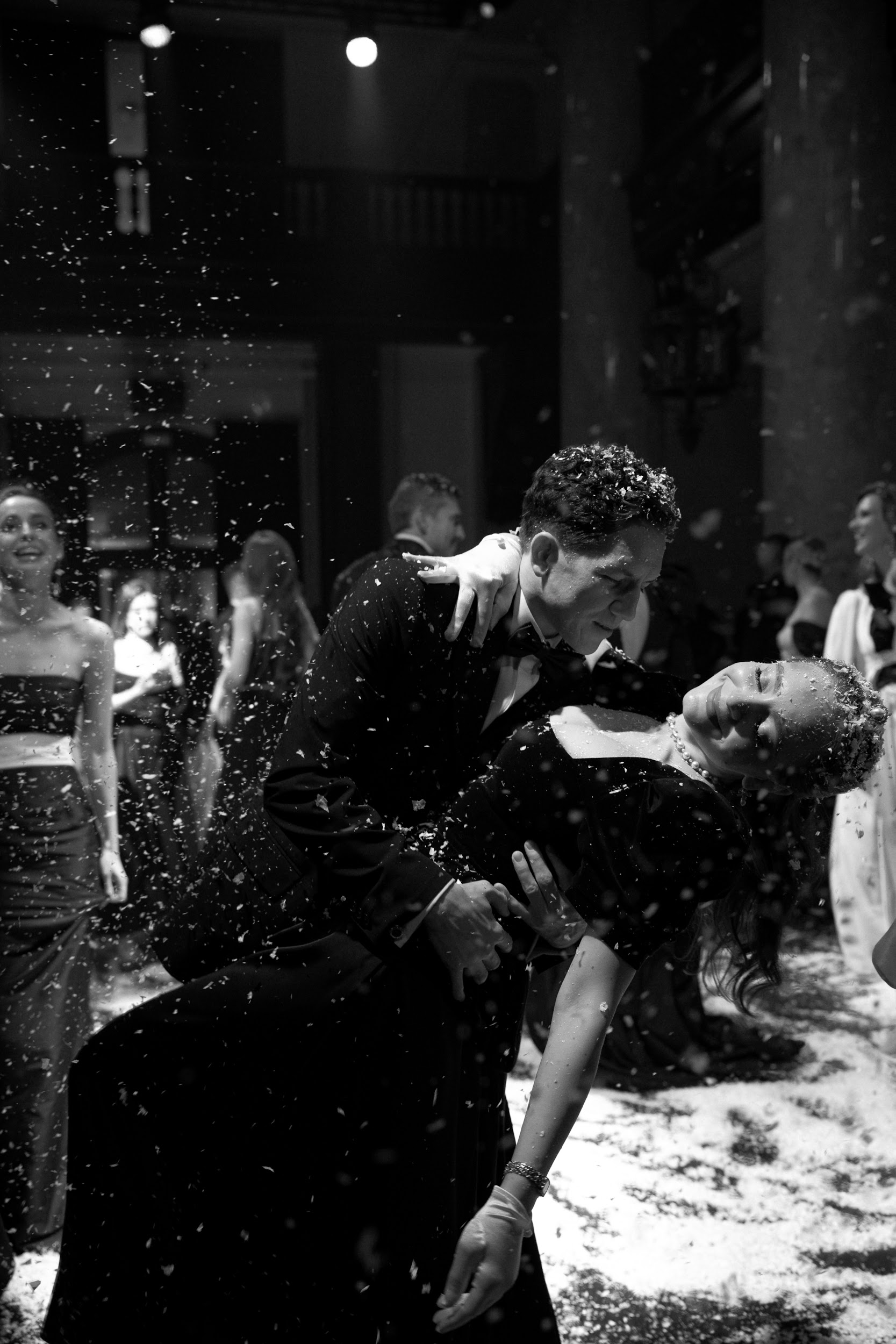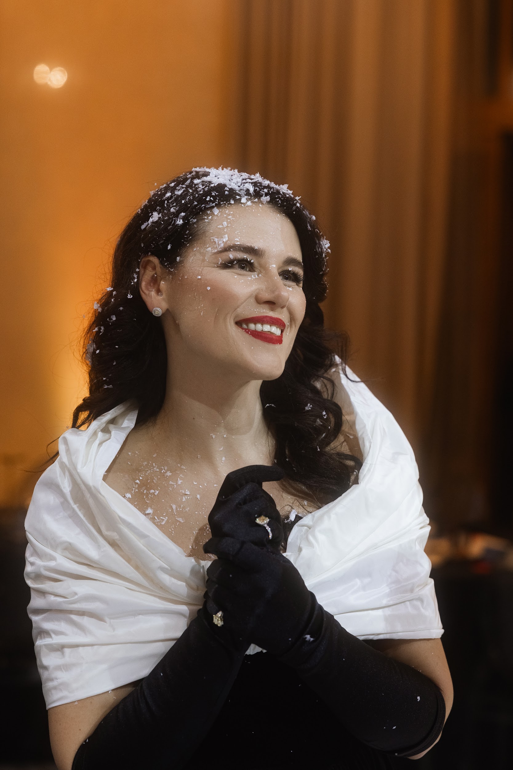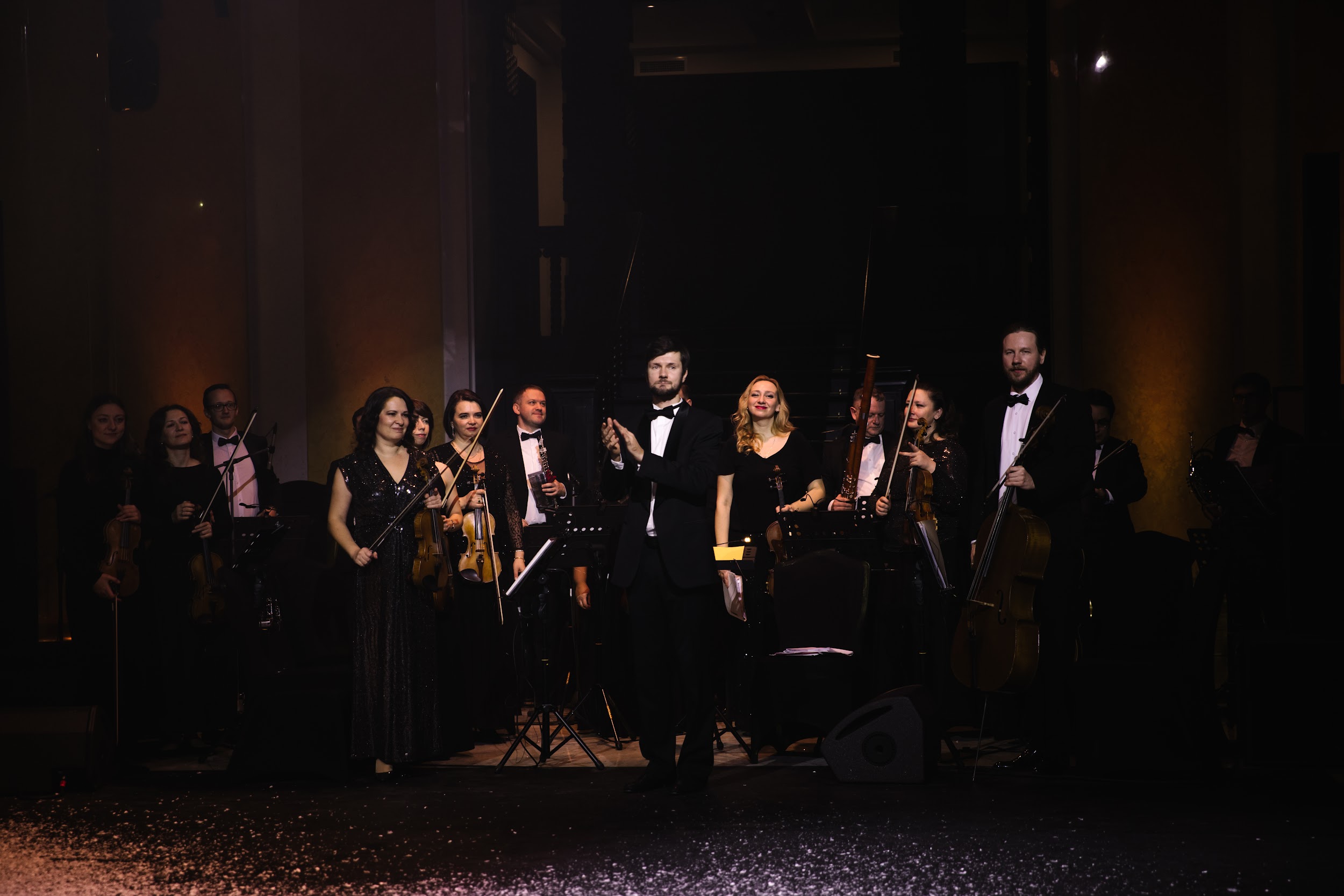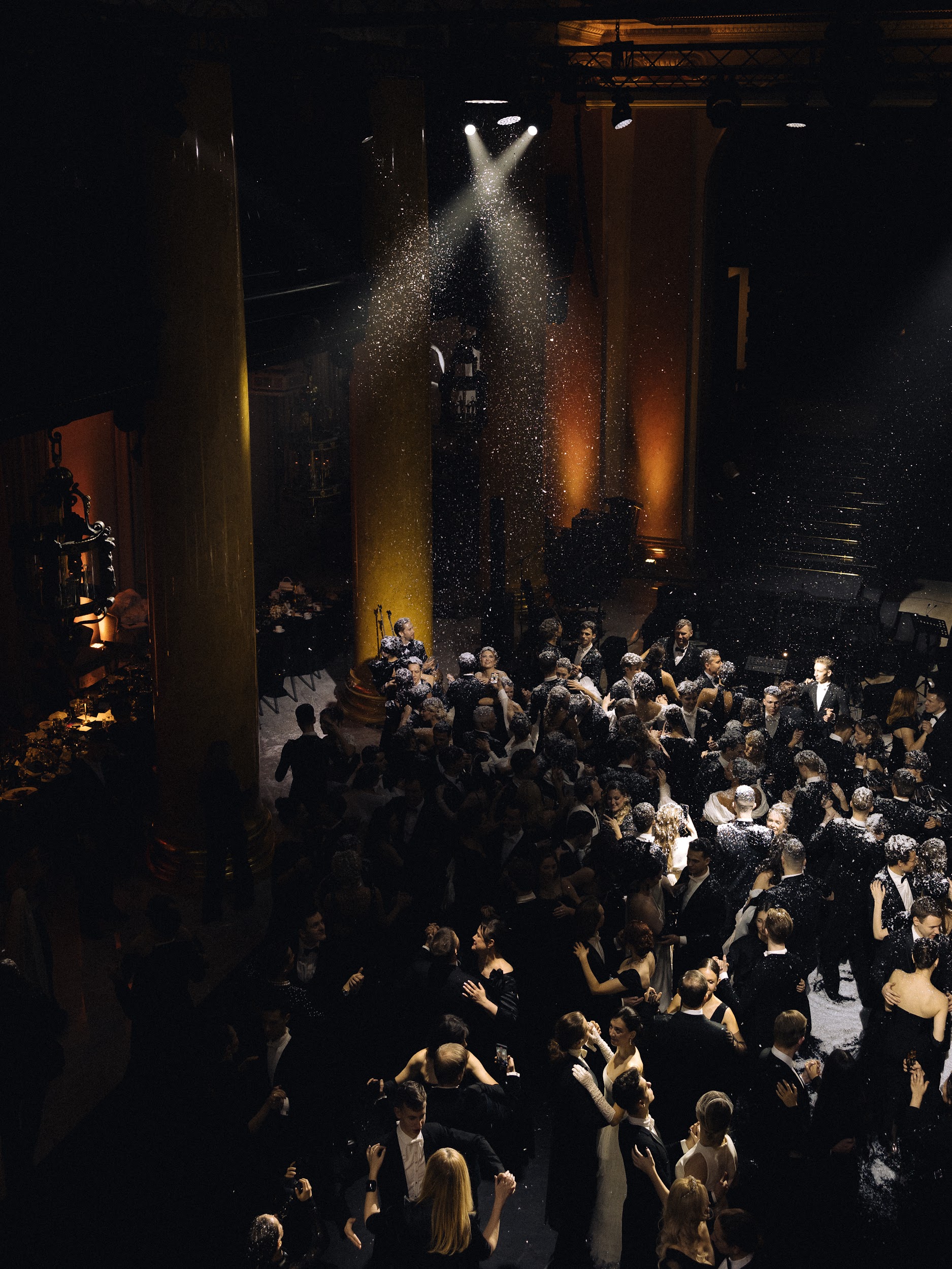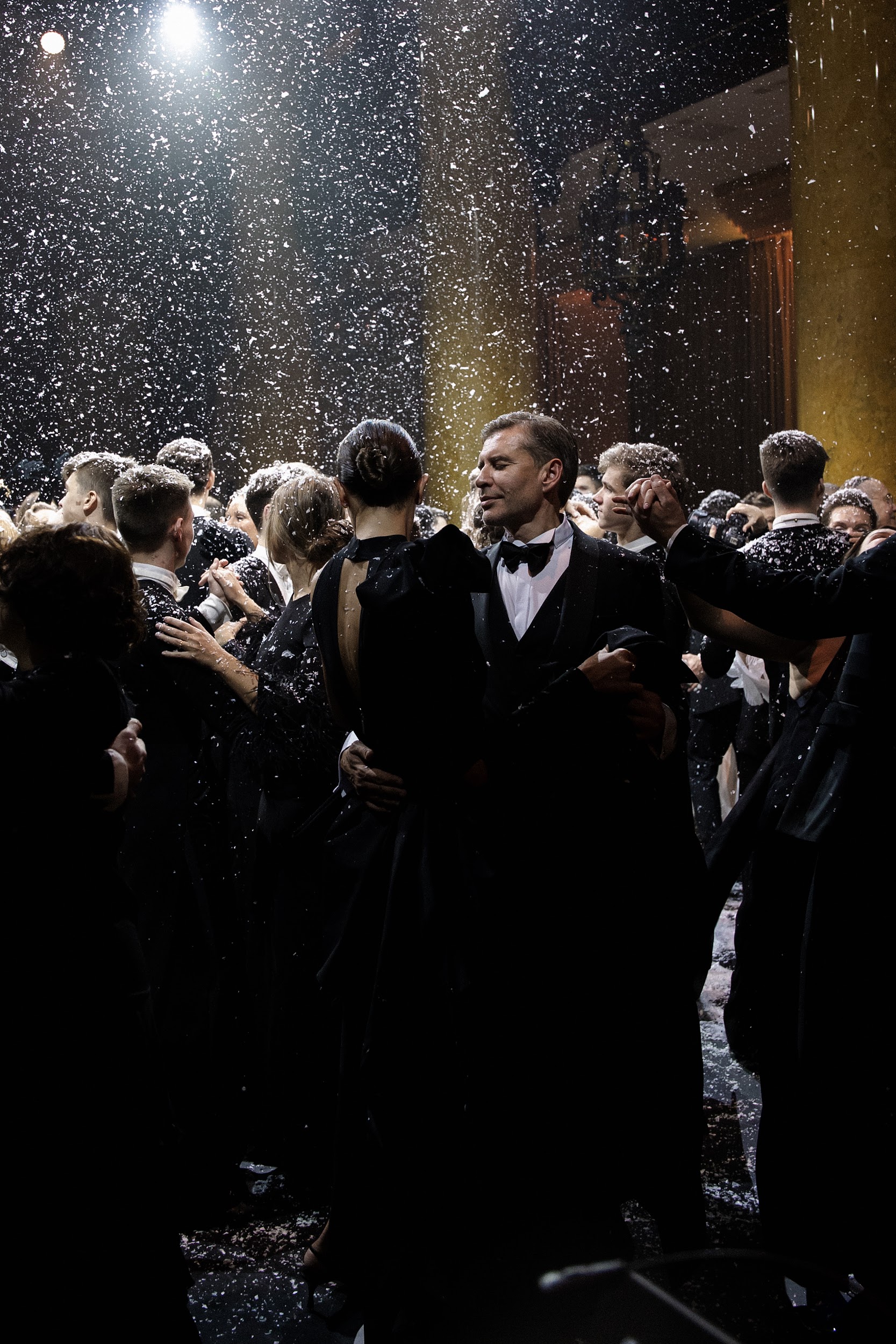 Бальная часть завершилась зимней сказкой. Когда лауреат международных конкурсов Лука Петренко пел «Ave Maria», с потолка полетел снег, хлопья осыпали всех вокруг, и на лицах засияли по-детски добрые улыбки.