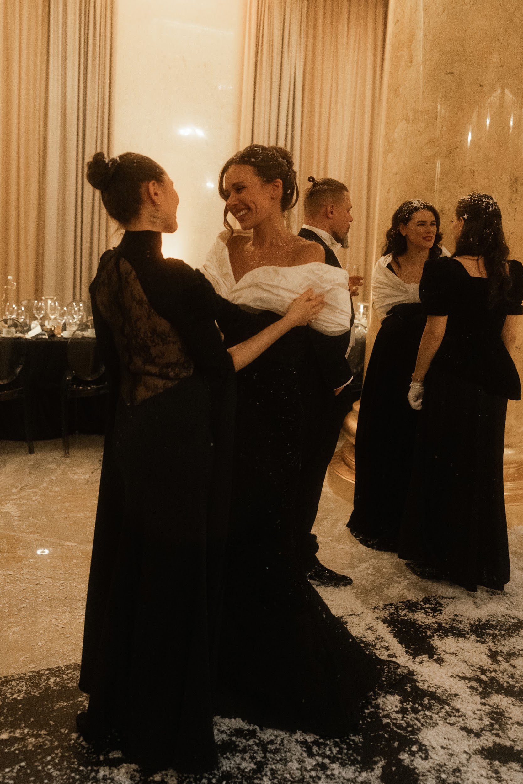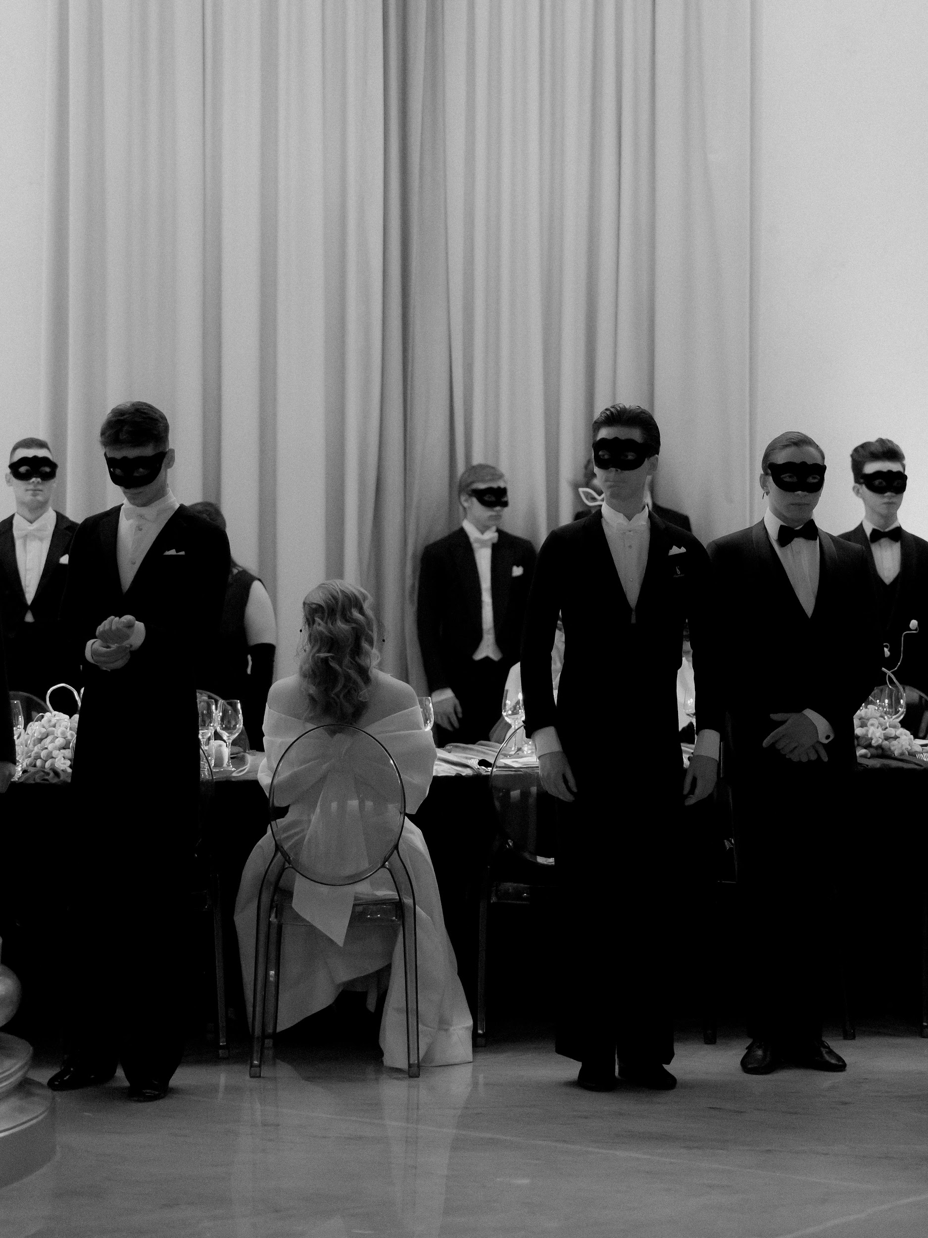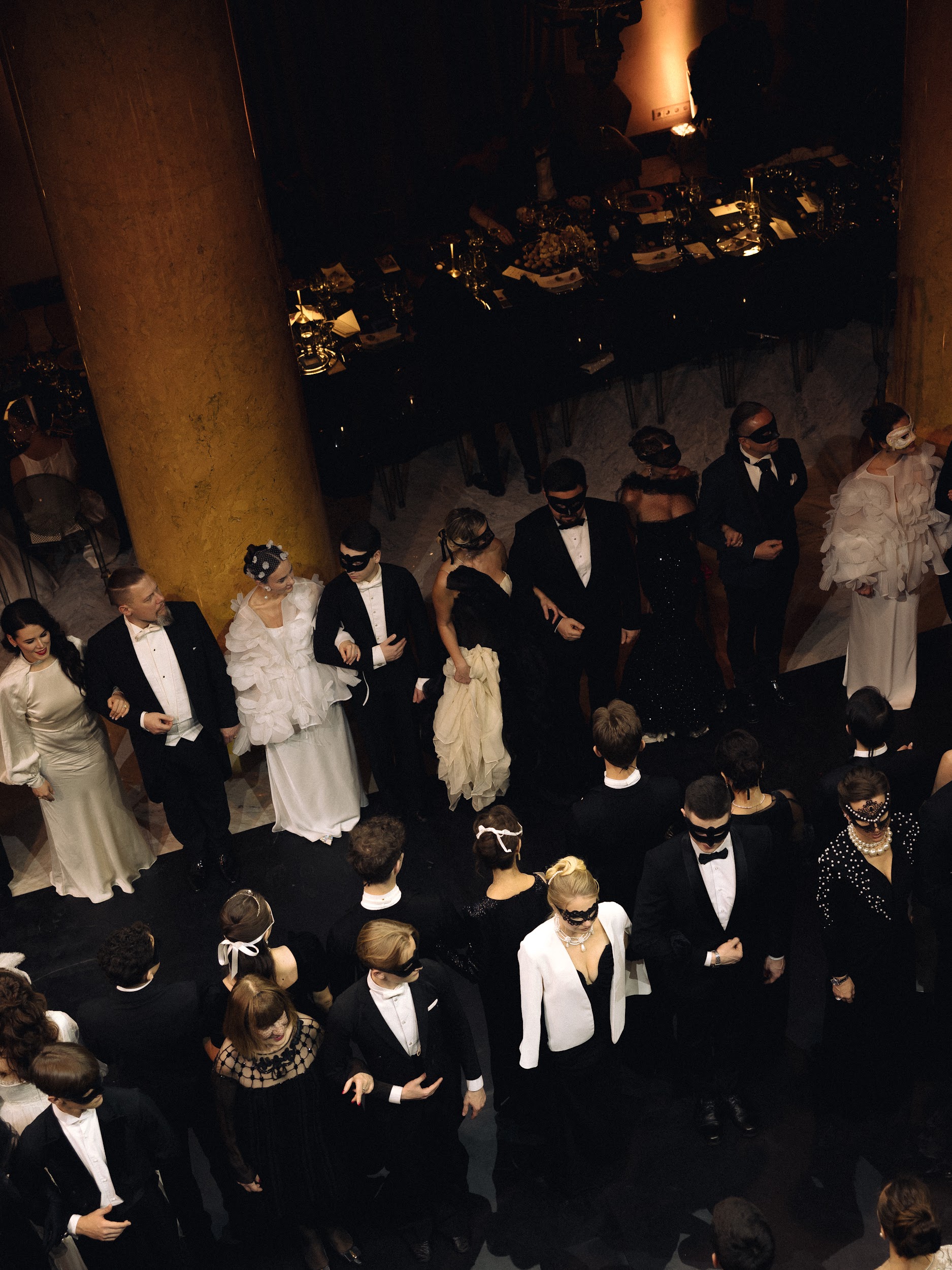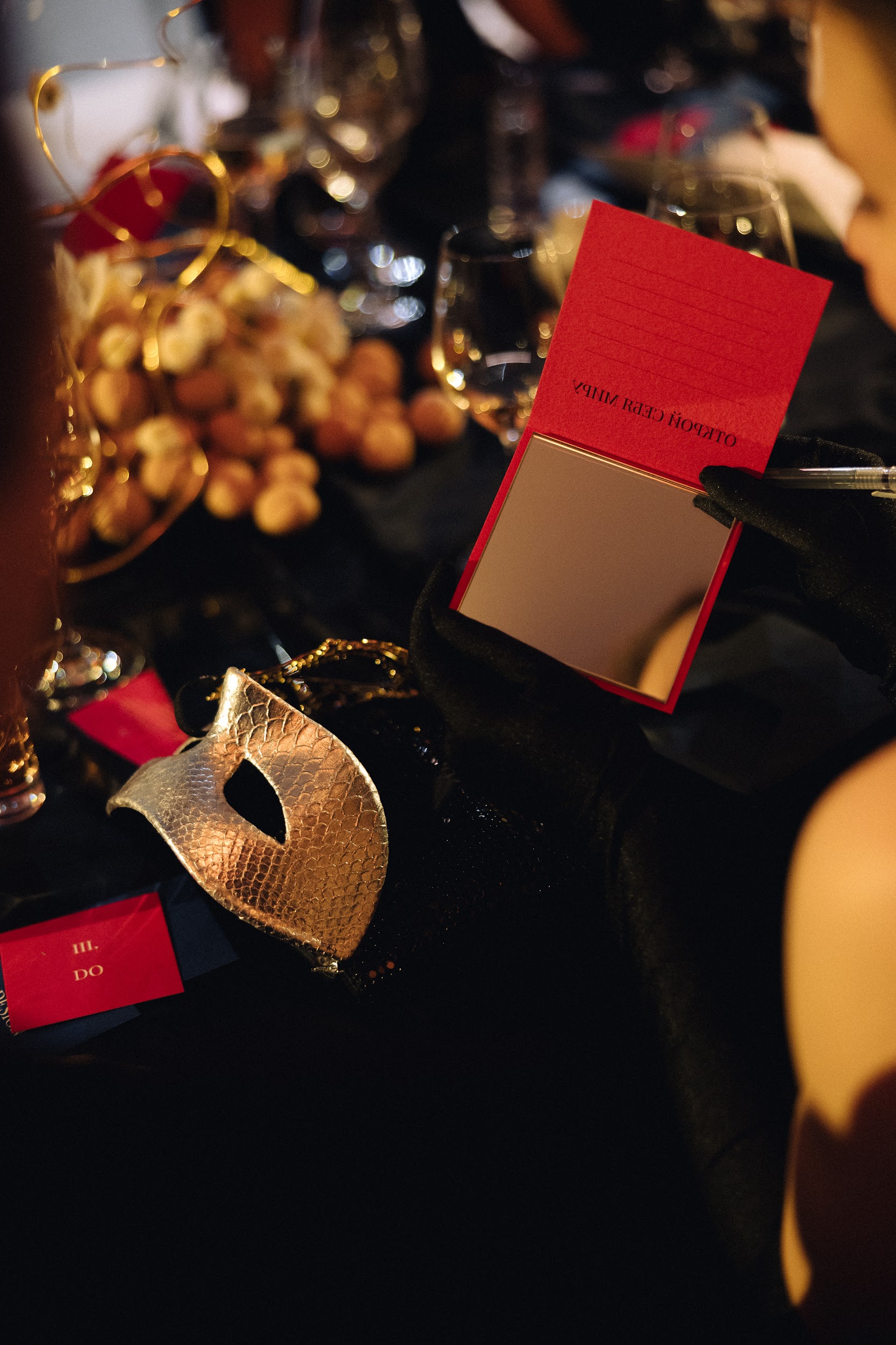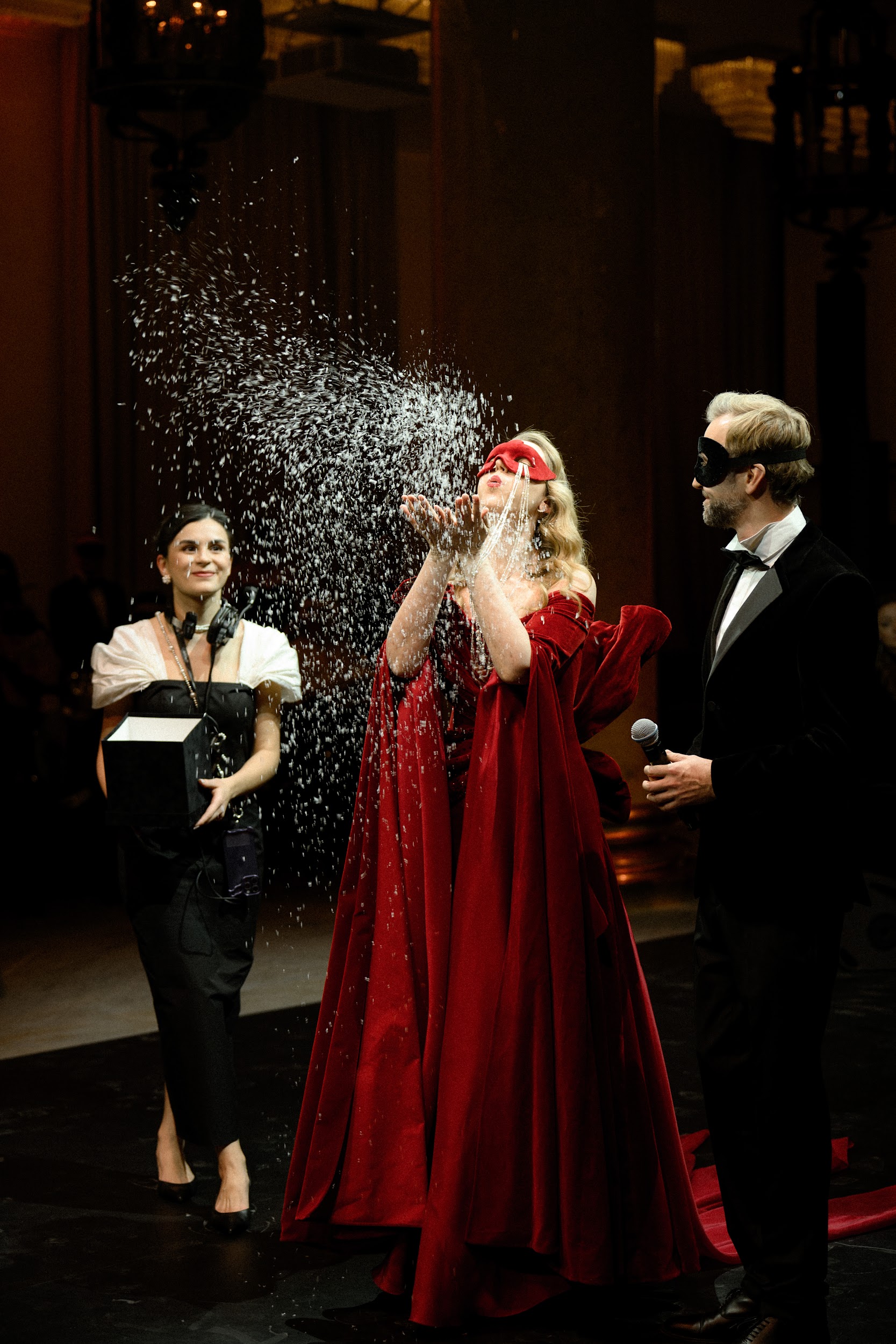 Во втором акте мы углубились в тему внутреннего мира, предлагая участникам взглянуть друг другу в глаза. Рассуждали, что жизненные попутчики создают наш характер, и иногда, теряя направление, мы находим самих себя. Эта часть плавно подвела нас к третьему акту, названному „Действуй“, где мы знакомились не только с окружающими, но и с главным человеком в жизни — самим собой. Параллельно с этим звучала музыка Петра Чайковского, которая тонко переплеталась с историей „Щелкунчика“ и верой в чудо. Щелкунчик предстал как человек в маске, и только благодаря чистой любви он превратился в настоящего принца. Философия нашего бала-маскарада заключалась в том, что важно смотреть глубже — как на себя, так и на окружающих», -говорил Ольга Малиновская, основатель свадебного агентства и клуба эстетов GREY CHIC и главный редактор одноименного журнала.