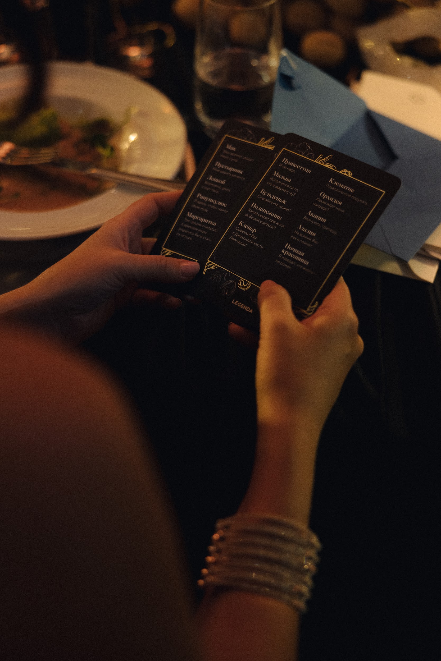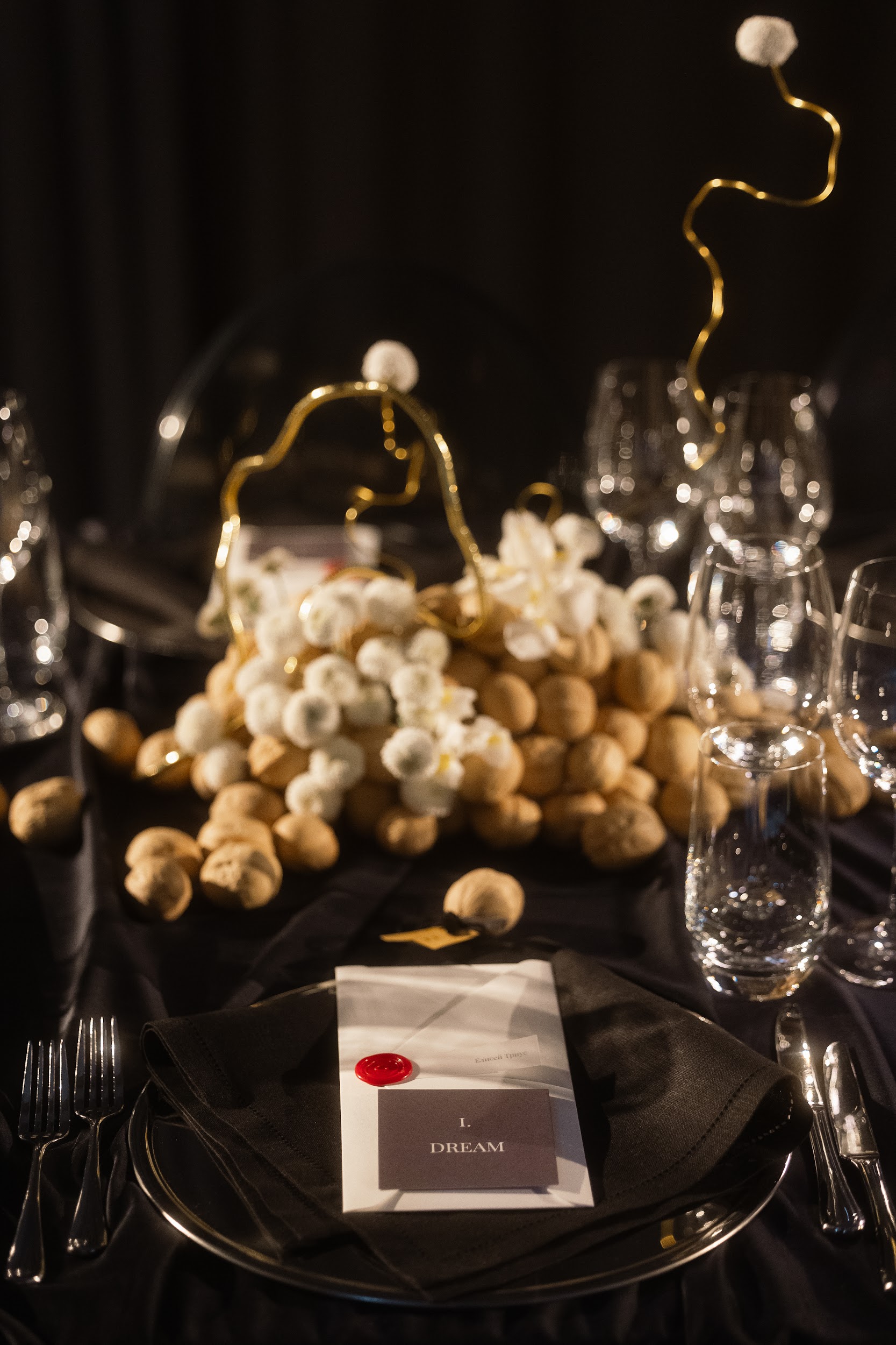 За столом у каждого гостя лежал пронумерованный орех, символизировавший волшебный Кракатук, исполняющий желания. Изысканные блюда и коктейли были оформлены с любовью и вниманием к деталям.