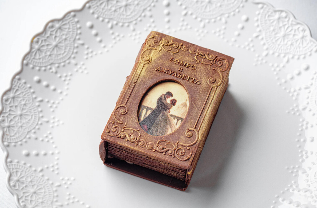 В элегантном ресторане Sansa на Пречистенской набережной с особенным мастерством подошли ко Дню всех влюбленных: концепт-шеф Ярослав Балёнь подготовил уникальный десерт по мотивам пьесы «Ромео и Джульетта». «Любовь — это не только чувство, это искусство», — эти слова как нельзя лучше отражают суть эксклюзивного десерта, вдохновленного одним из самых главных произведений о любви. В своей работе Уильям Шекспир мастерски передает сложность и красоту любви, так и Ярослав Балень в десерте отражает весь спектр вкусов и представляет свою книгу, выполненную из молочного шоколада, внутри которой кроется нежный ганаш на основе фиников и бейлиса, пралине из миндаля с ванилью и тестом катаифи, а также гель из смородины с красникой.