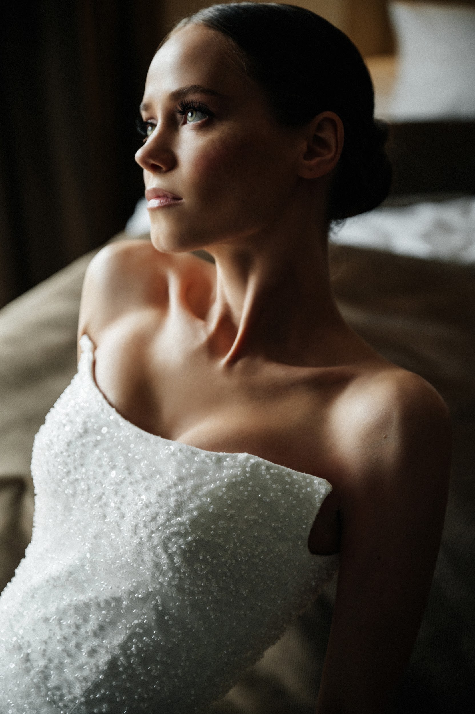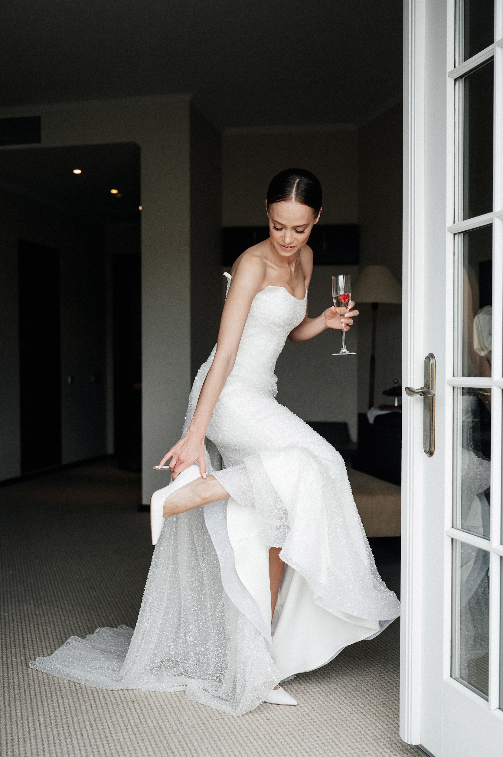 С невестой Катей мы достаточно легко и быстро вошли в контакт, работать с ней как с актрисой одно удовольствие. Любую эмоцию можно попросить — от улыбки до слезы. Было заложено достаточное количество времени, а у Кати были представления о съемке утра. К тому же Катя грациозная и утонченная, поэтому съемка утра невесты была очень легкой и в удовольствие.