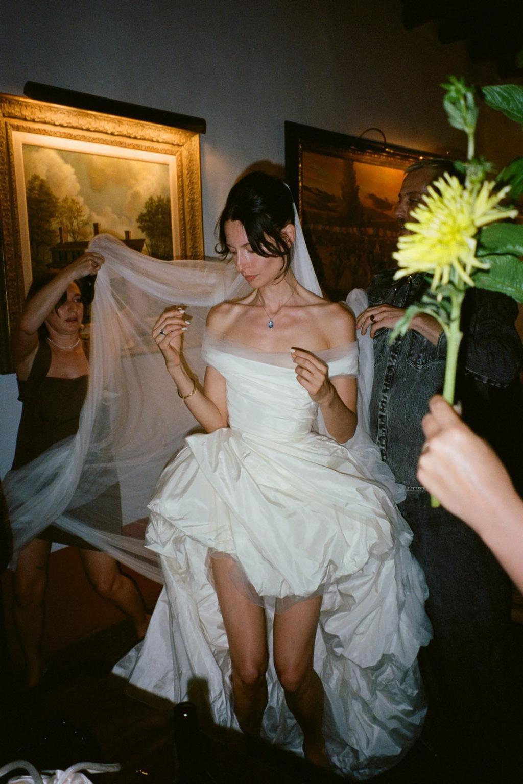Некоторые девушки для столь особенного дня выбирают безопасную классику — Vivienne Westwood, Dior, Vera Wang. Другие же проявляют индивидуальность: посмотрите на образ Виттории Черетти в Jacquemus или Тейлор Хилл в многоярусном Etro.