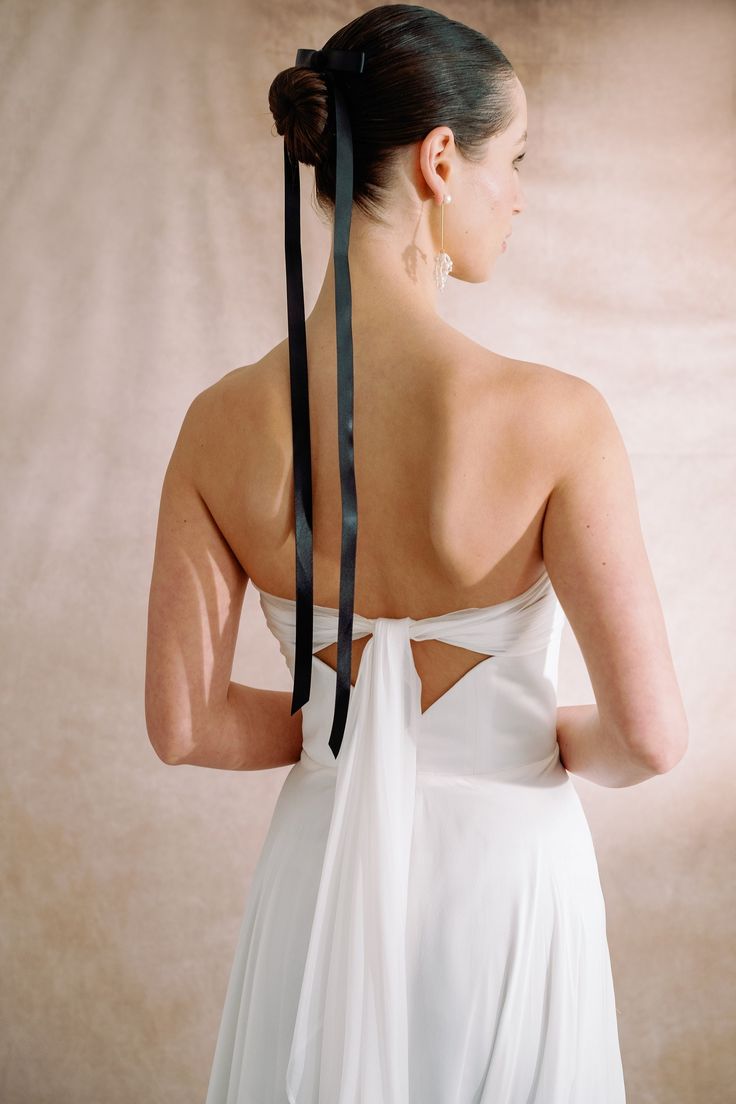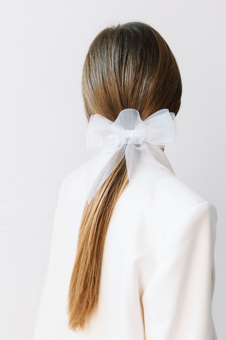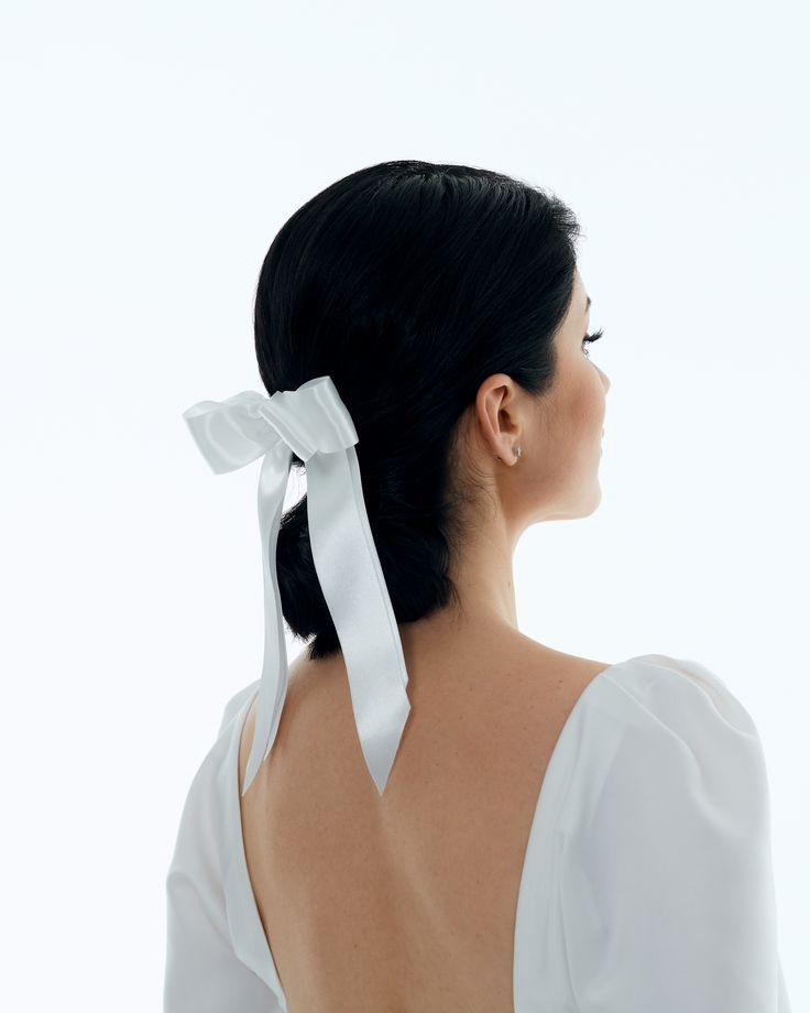 Если вы хотите создать романтичный образ, то обратите внимание на различные ленты или банты. Этот элемент очень актуален в 2024 году и помогает добавить прическе аккуратный и женственный акцент. Кстати, не нужно ограничиваться только белой палитрой; бант черного, красного или других цветов будет выглядеть не менее торжественно.