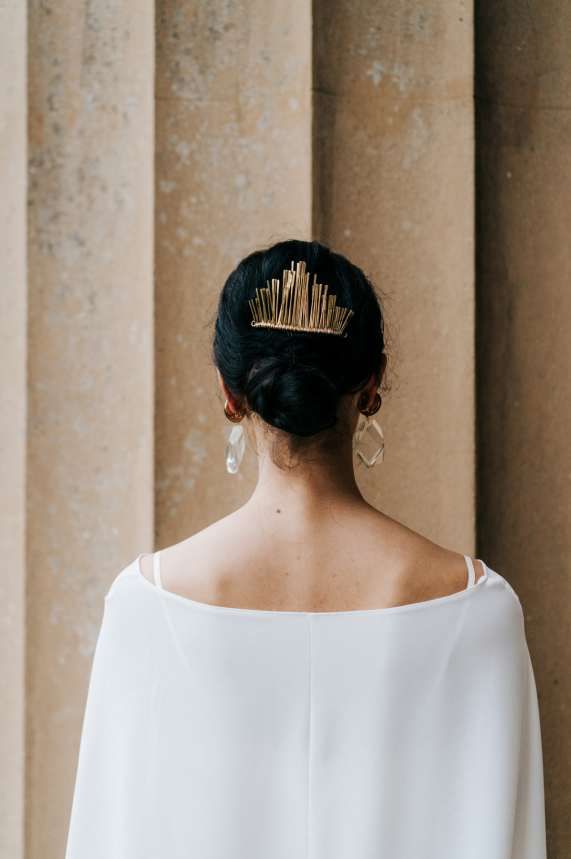 Оригинальные минималистичные заколки — удачная идея для невест, которые планируют выходить замуж с собранными волосами. Выбирайте варианты из металлов тех цветов, которые будут коррелироваться с вашими аксессуарами (клатчем, украшениями и так далее).