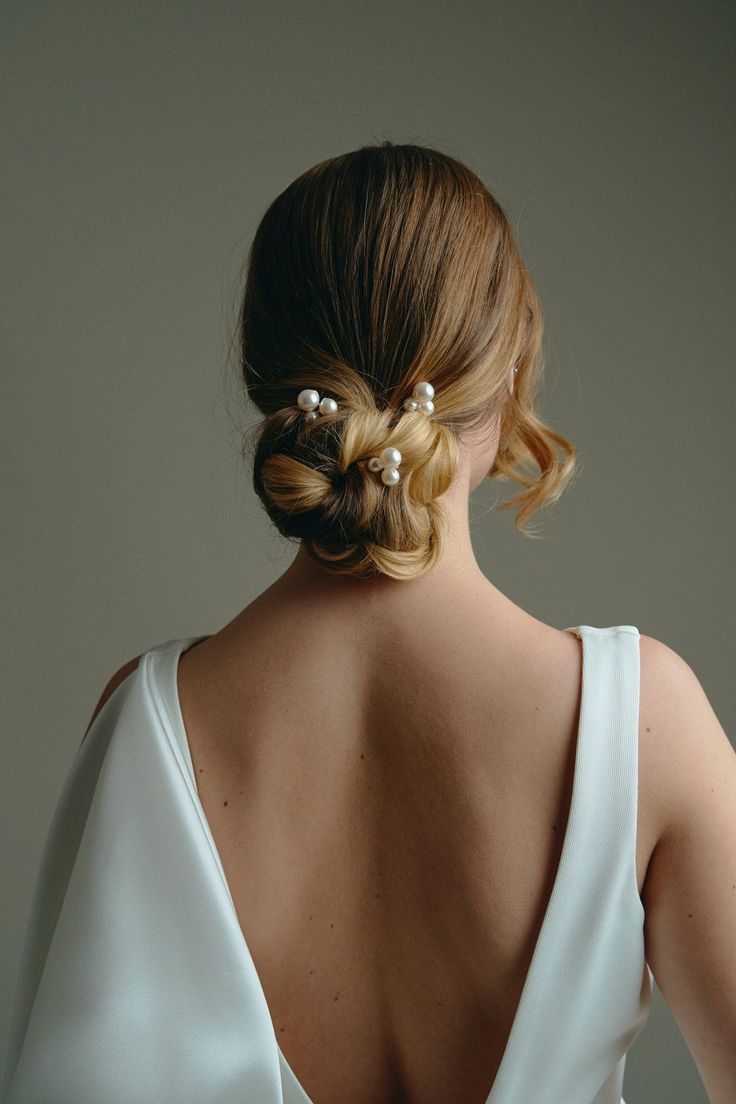 Жемчуг невероятно гармонично смотрится в свадебных образах. Чаще всего мы рассматриваем его как часть украшений или декора сумочки/туфель, но попробуйте добавить жемчужные элементы в свадебную прическу. Заколки с жемчугом будут хорошо смотреться как в лаконичной, так и в более расслабленной укладке.