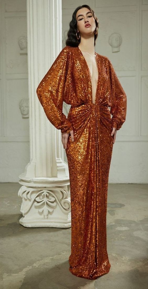 Несмотря на то что коктейльные наряды будут доминировать, в 2024 году для гостей на свадьбу предлагают смелые вечерние наряды, если позволяет дресс-код. Например, платье-макси с блестками, которое потом можно надеть и в повседневной жизни.