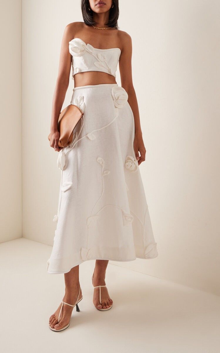 Цветочные ткани не новый тренд в свадебной моде, но в 2024 году ткани с цветочными узорами станут определяющим элементом в нарядах. «В рамках тенденции, которую назвали „Зачарованный сад“, прогнозируется, что многие мамы молодоженов будут носить наряды с цветочными мотивами, будь то роспись, вышивка или узор», — считает Мария Куликова.