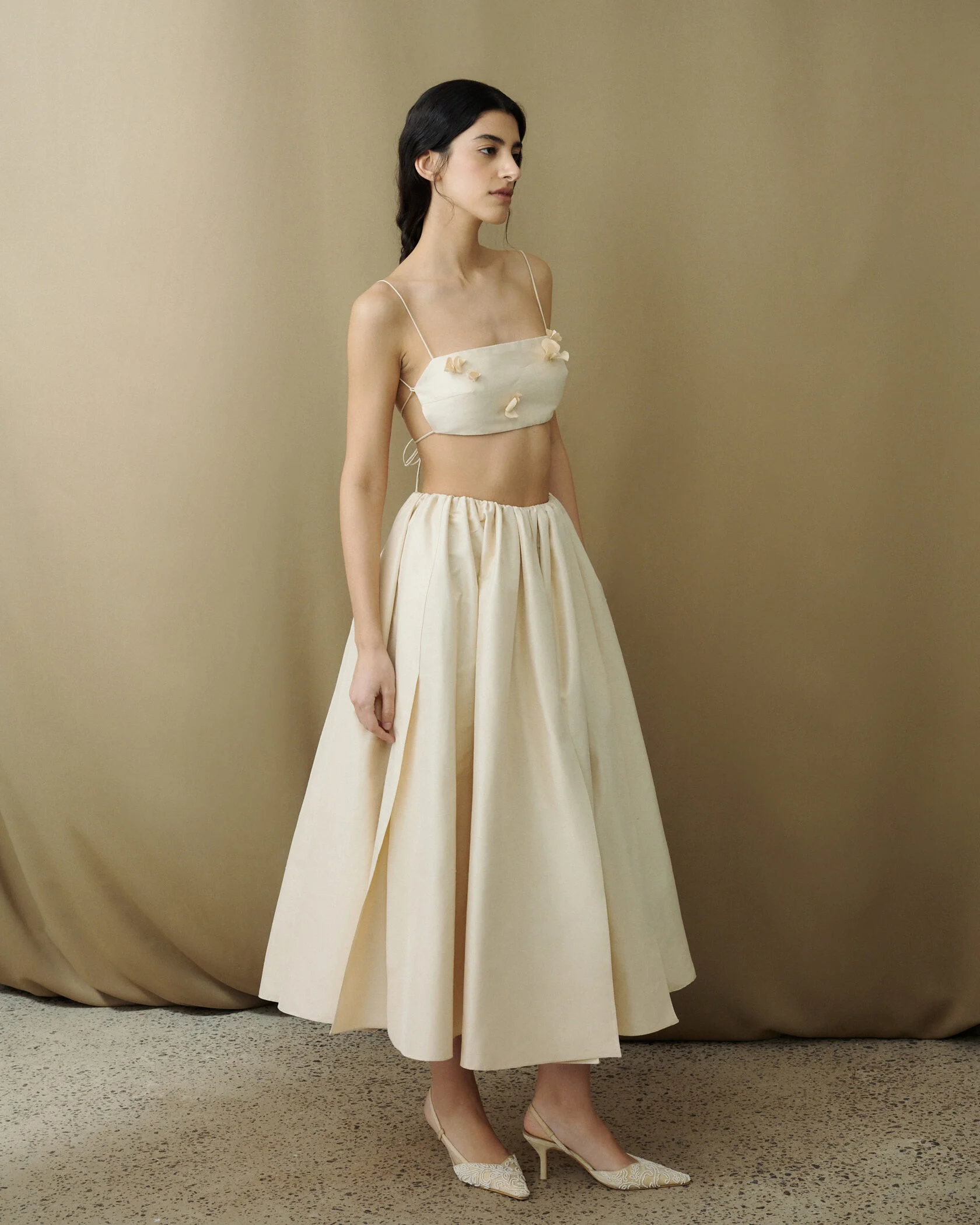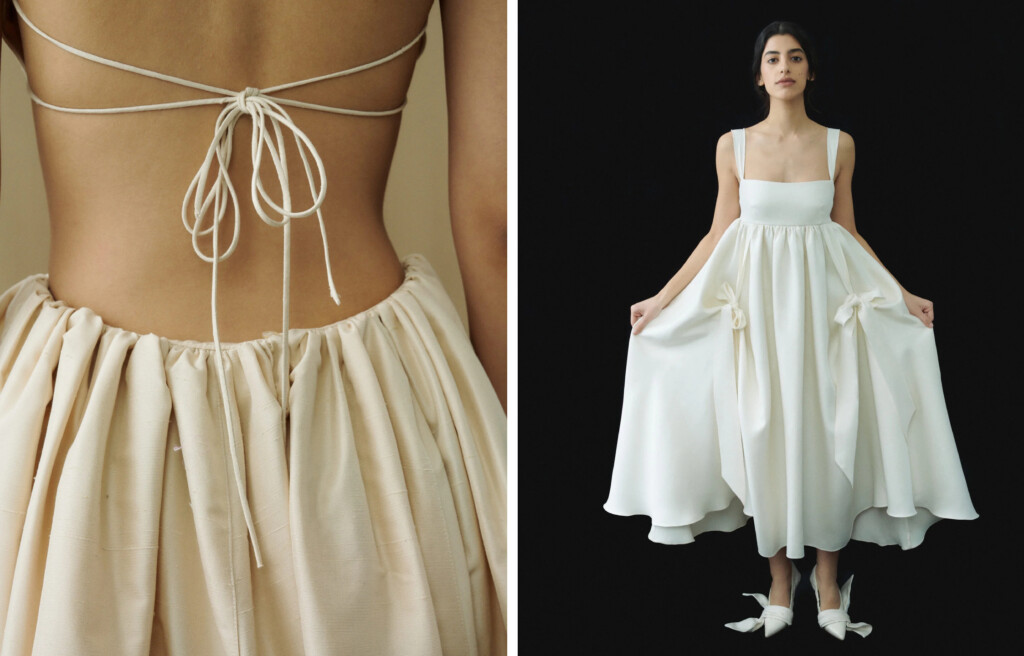Дизайнер бренда сделала акцент на силуэты для самых разных девушек и разных форматов свадьбы. В капсуле можно найти минималистичные варианты лаконичного кроя, подчеркивающего фигуру. Есть и более концептуальные и фантазийные силуэты, к примеру, платье с объемной юбкой-баллоном, сет из топа с аппликацией и юбки-солнце. Все новинки представлены на официальном сайте бренда. Стоимость платьев варьируется от 36 до 64 000 рублей.