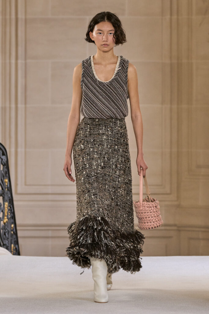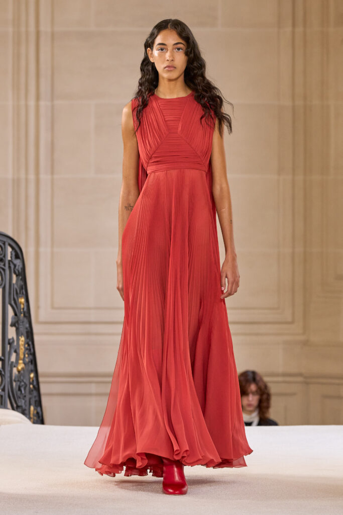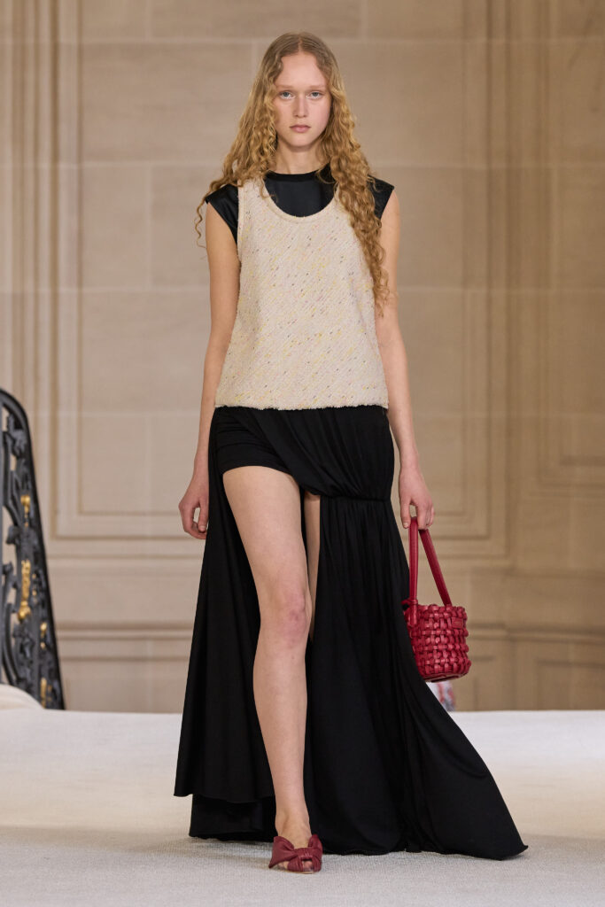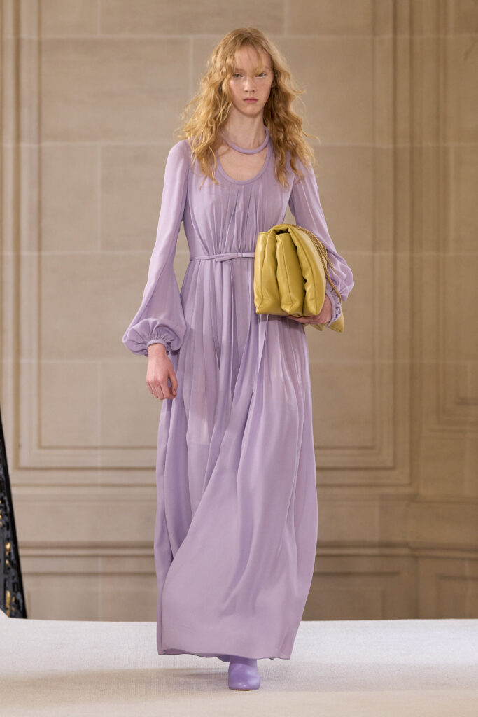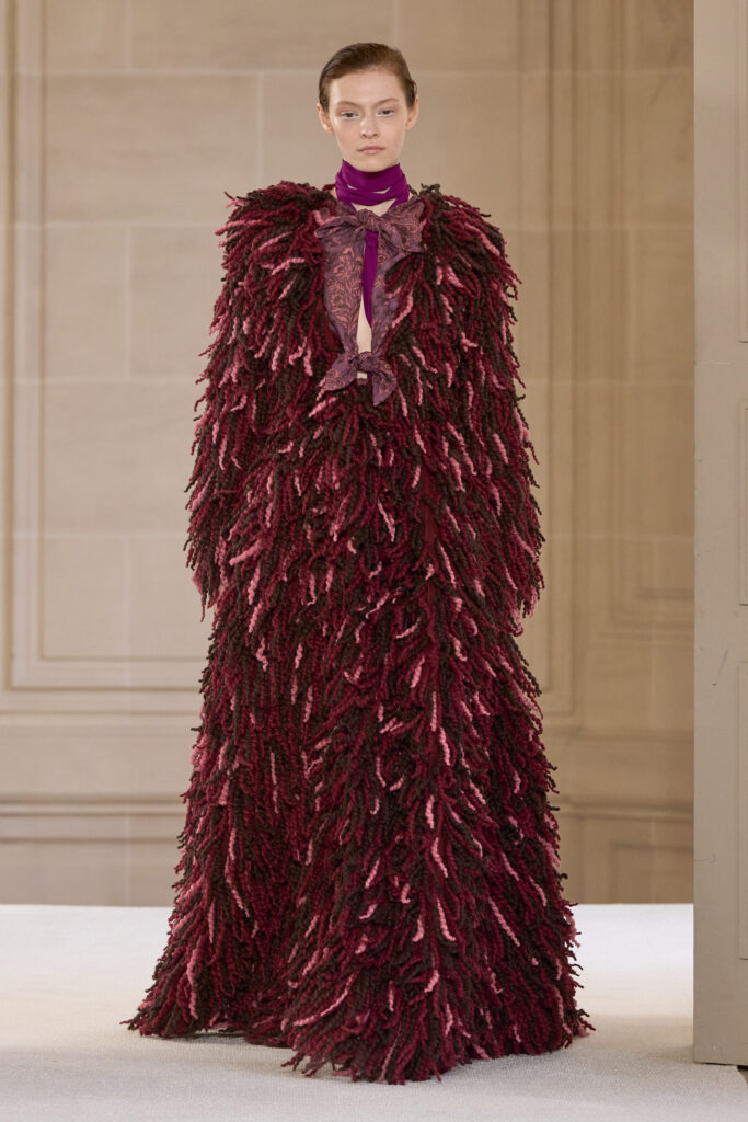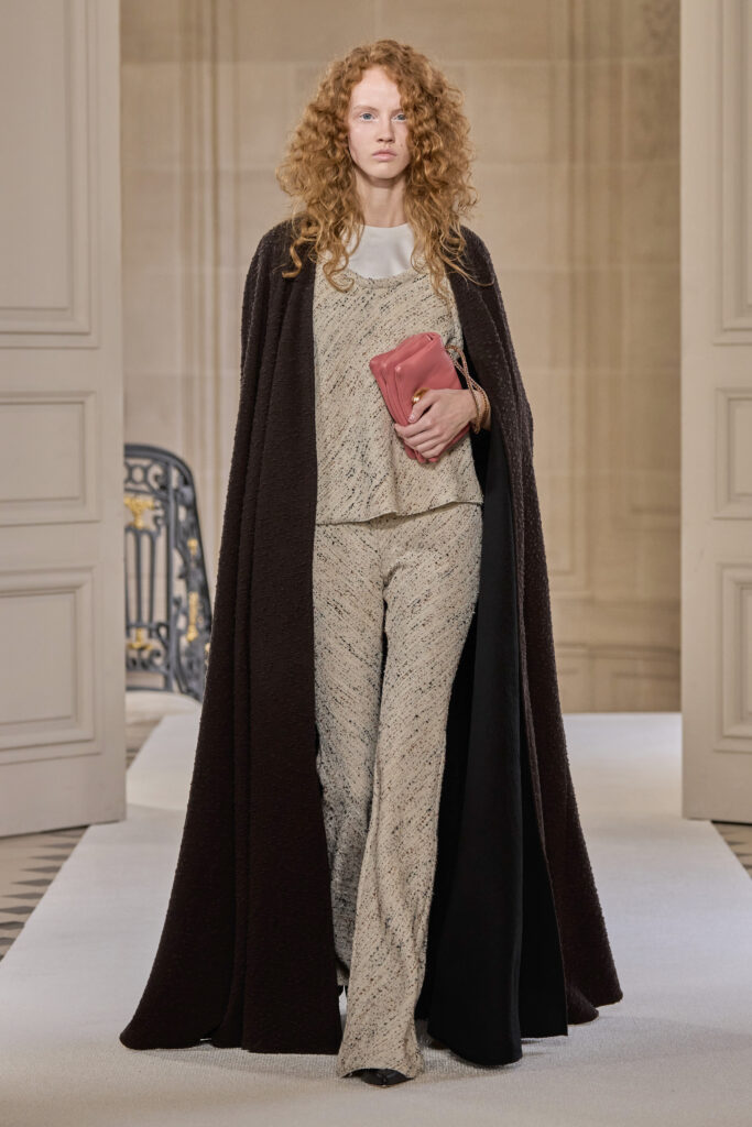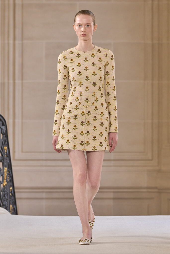 Дизайнеру удалось уйти от театральных, нарочито праздничных аутфитов и вернуться к утонченной и нежной эстетике. Любопытно, что в коллекции помимо платьев представлены и вполне базовые наряды — трикотажные костюмы, комплекты в офисном стиле, пальто и стильные мини-платья. Конечно, не обошлось без роскошных сказочных платьев с обилием драпировок и фатина. Смотрим все 40 образов с показа Giambattista Valli!