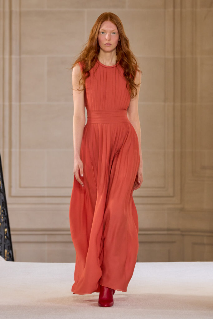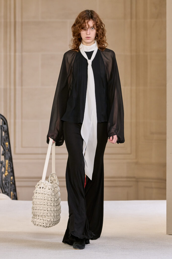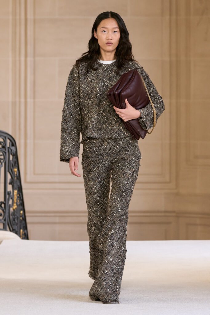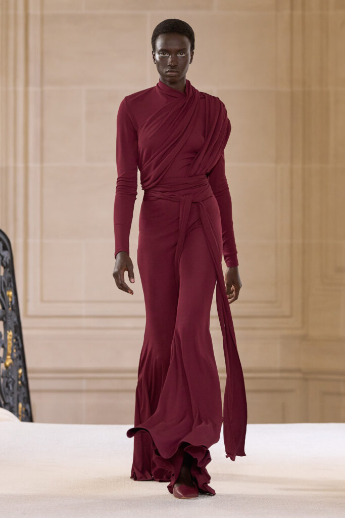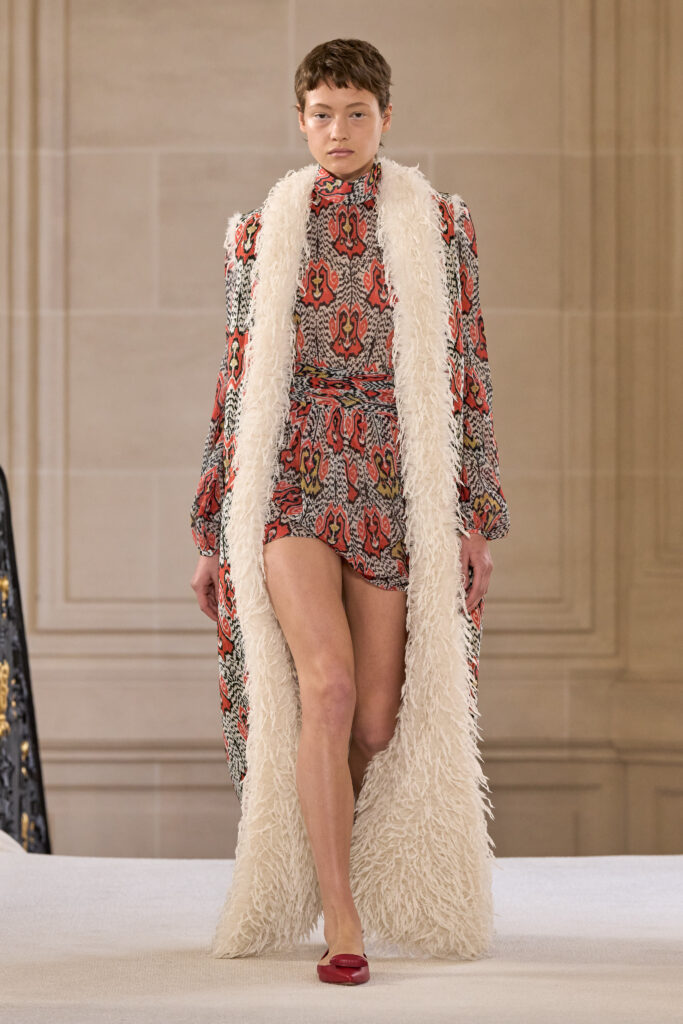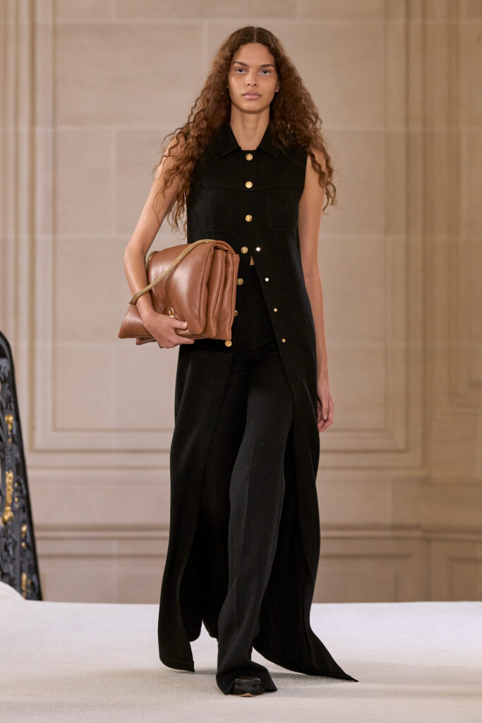 Дизайнеру удалось уйти от театральных, нарочито праздничных аутфитов и вернуться к утонченной и нежной эстетике. Любопытно, что в коллекции помимо платьев представлены и вполне базовые наряды — трикотажные костюмы, комплекты в офисном стиле, пальто и стильные мини-платья. Конечно, не обошлось без роскошных сказочных платьев с обилием драпировок и фатина. Смотрим все 40 образов с показа Giambattista Valli!