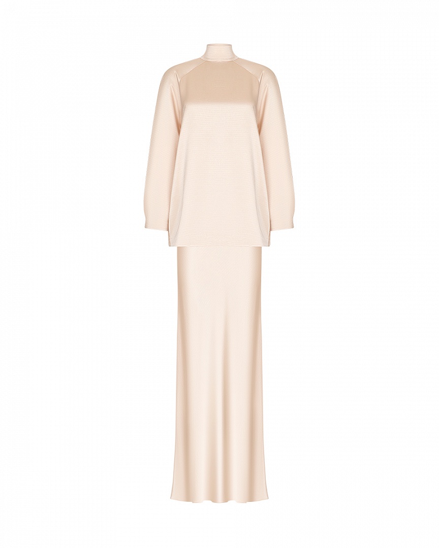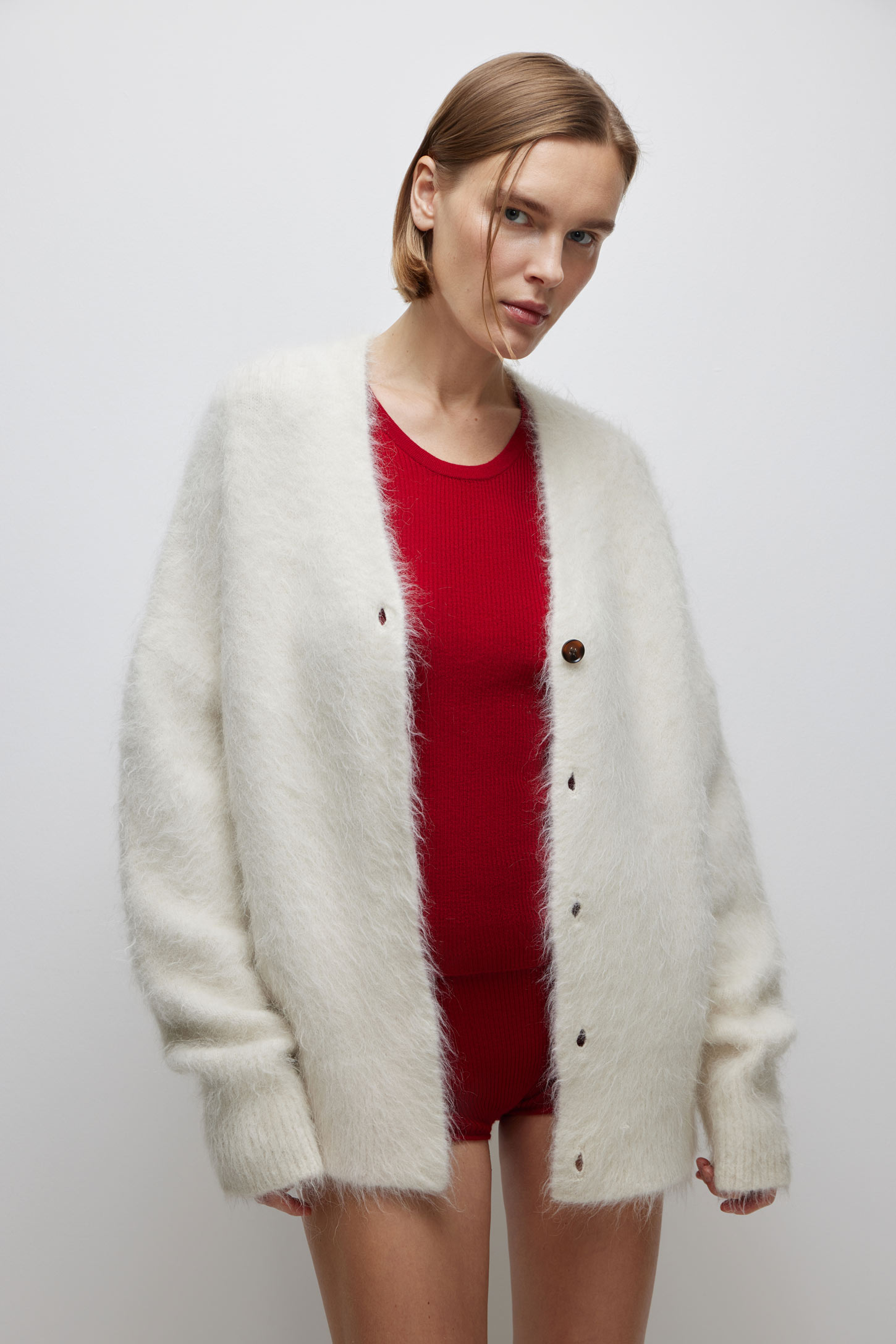 Контрастные текстуры, такие как шерсть и шелк, помогают создать роскошный и элегантный образ. Лаконичный шелковый костюм можно дополнить кардиганом из шерсти альпака, а также пушистыми балетками. Такой наряд идеально подойдет для уютного вечера дома.
