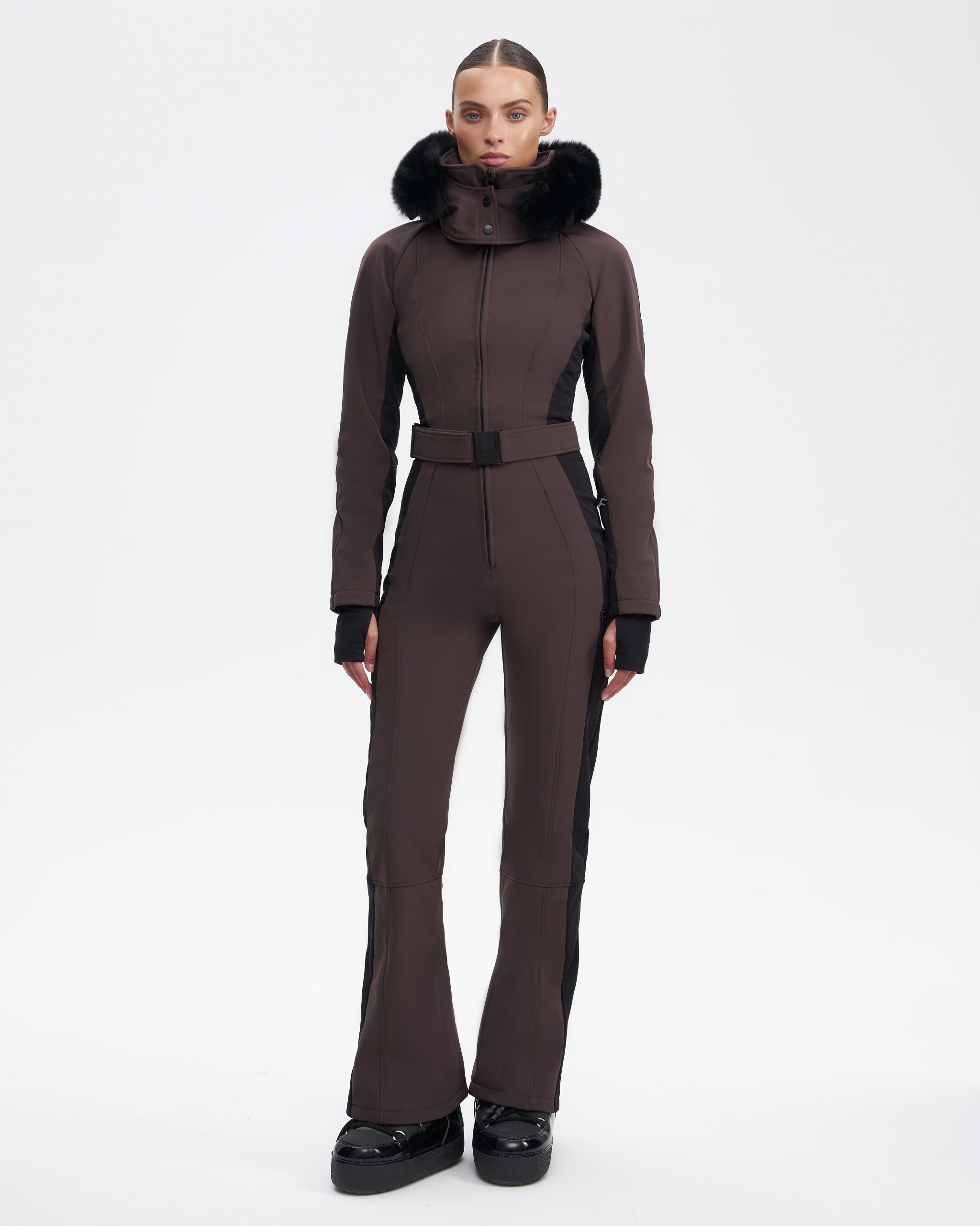 Лыжный костюм — практичный выбор для настоящих морозов. В таком наряде вы точно не замерзнете, а прогулки по заснеженному лесу будут максимально комфортными. Снизу можно надеть облегающее боди или комбинезон: второй слой пригодится, если захочется снять верх в помещении. Ботинки мунбуты — не только тренд этой зимы, но и максимально легкая, практичная и удобная обувь на каждый день.