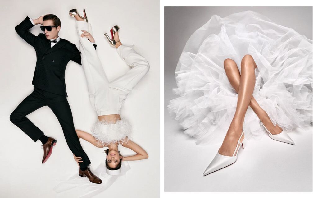 Christian Louboutin представил свою новую свадебную коллекцию. В нее вошли белые, серебряные и золотые туфли и босоножки для невесты в четырех силуэтах, а также две пары туфель для мужчин.