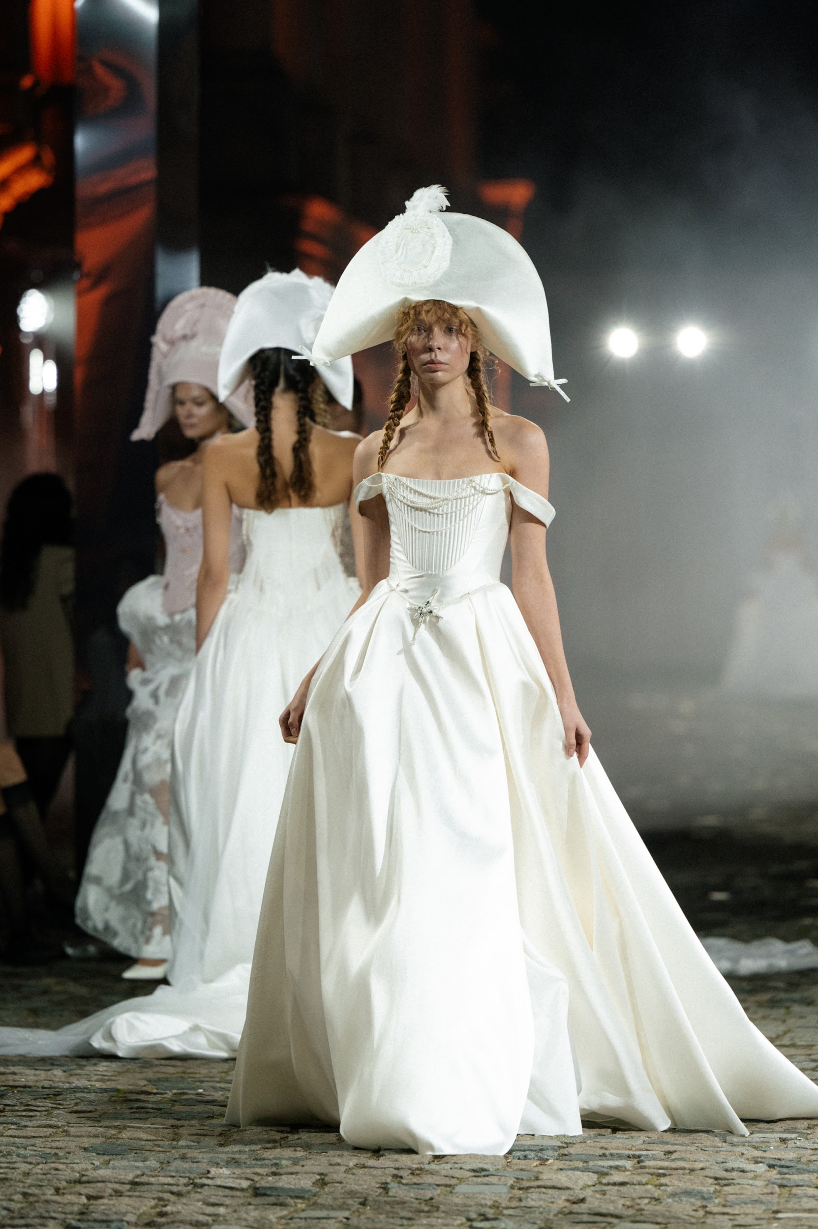 В рамках шоу было представлено несколько кутюрных коллекций: Ange Etoiles, посвященная знакам зодиака; Rara Avis, воплощающая идею о прекрасном райском саде; воздушная коллекция Blammo-Biamo; роскошная Imperial Opulence и коллекция Moon Light, вдохновленная лунным светом и сиянием. Стилизация образов моделей на показе также была приурочена к основной теме — истории. В качестве аксессуаров были подготовлены наполеоновские шляпы, дополненные фатами, объемными цветами и воланами.
