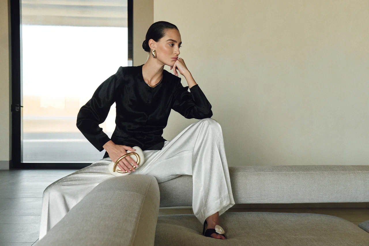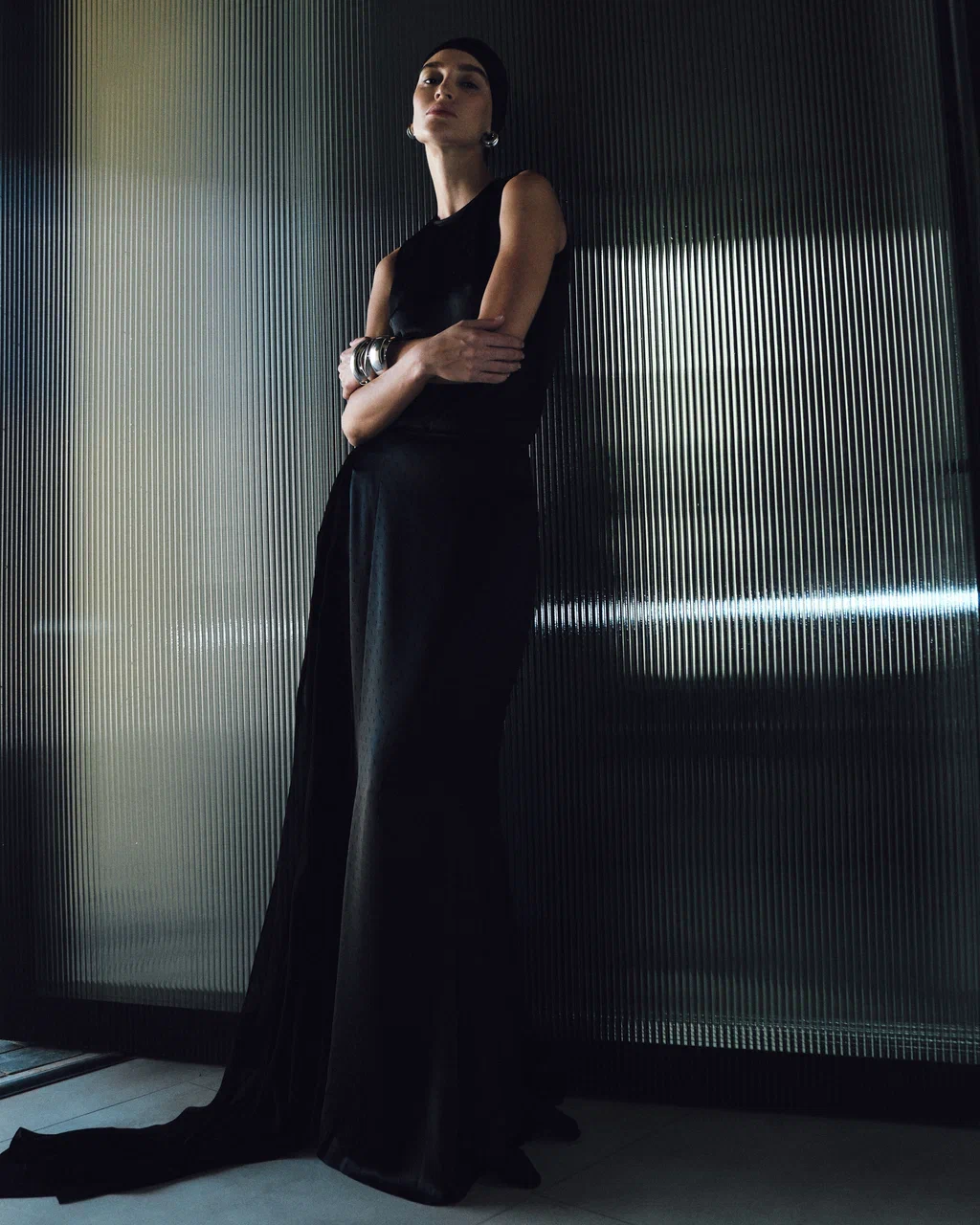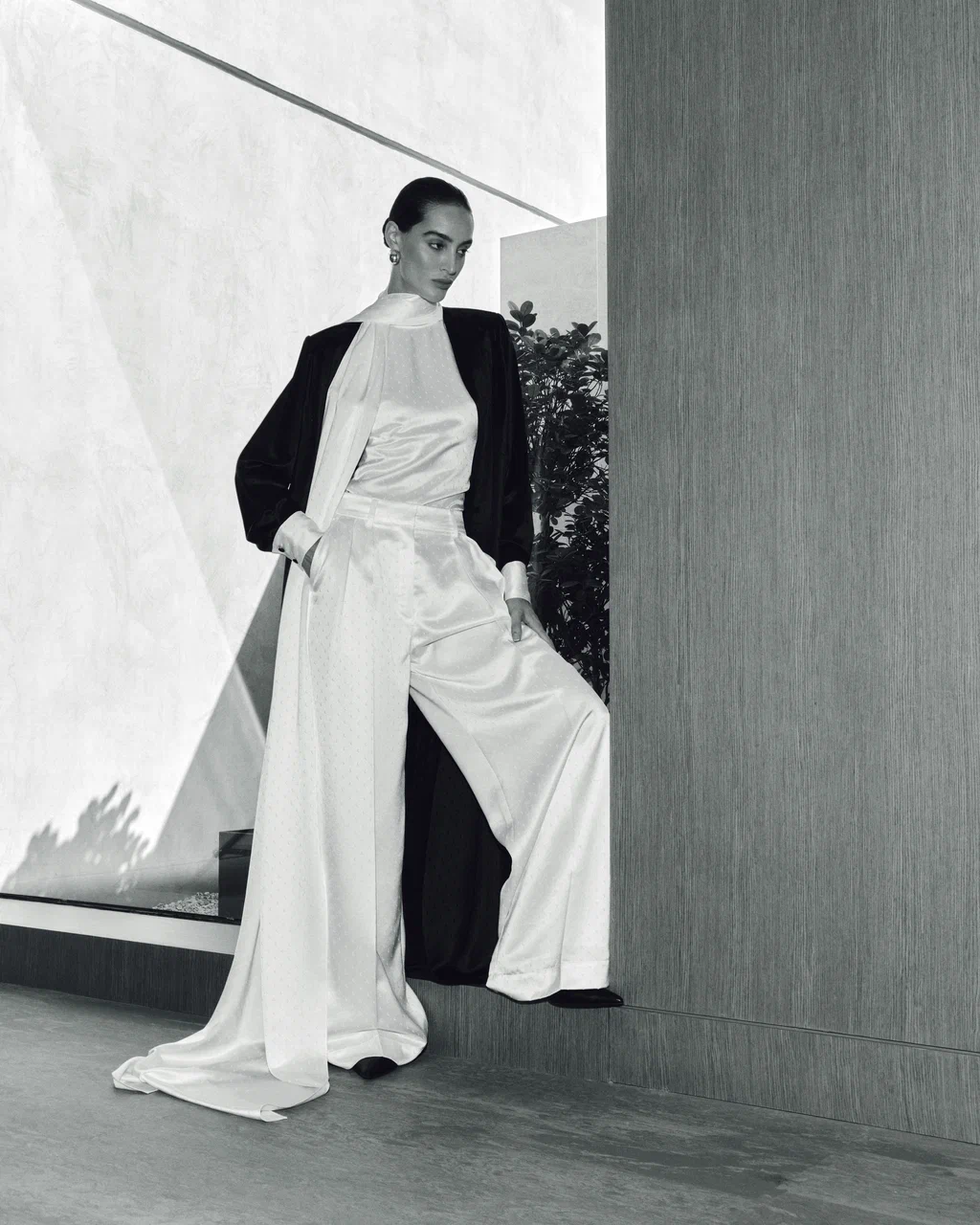 В вечерних моделях находит отражение главный символ коллекции — сочетание четкости и мягкости, строгости и легкости, прямых линий и текучих форм. Эти контрасты читаются и в деталях. Во многих изделиях прослеживается мотив застроченных складок на рукавах — они делают плечи графичными, но при этом плавно раскрываются, возвращая образу мягкость. Этот элемент легко адаптируется в повседневный гардероб и сочетается с разными стилями, позволяя играть с пропорциями и создавать новые комбинации.