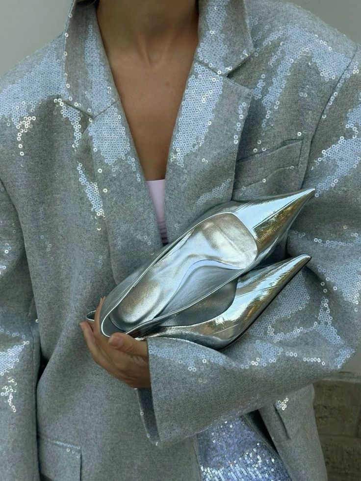 Иногда чтобы образ стал праздничным, достаточно всего одного акцента. В этом декабре советуем обратить внимание на обувь из металлизированной кожи. Это не просто тренд, а готовое заявление, идеально соответствующее новогоднему настроению.