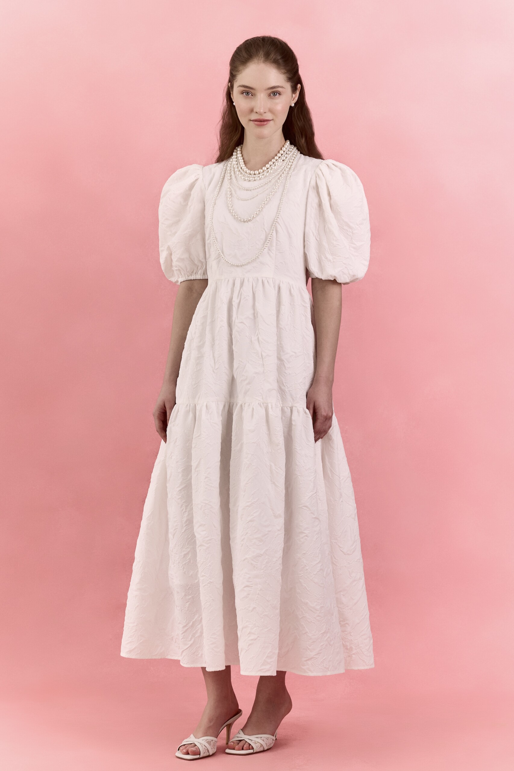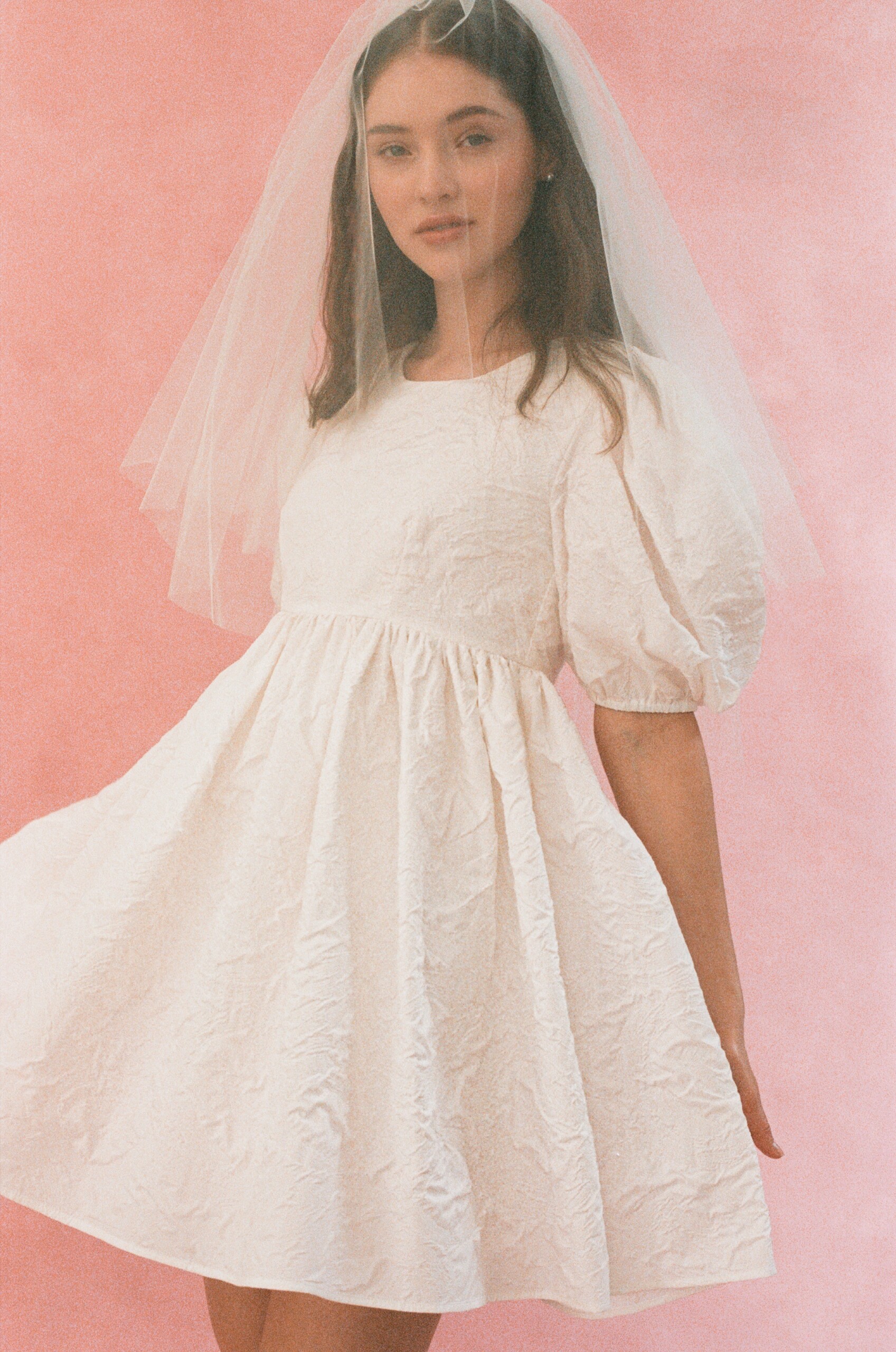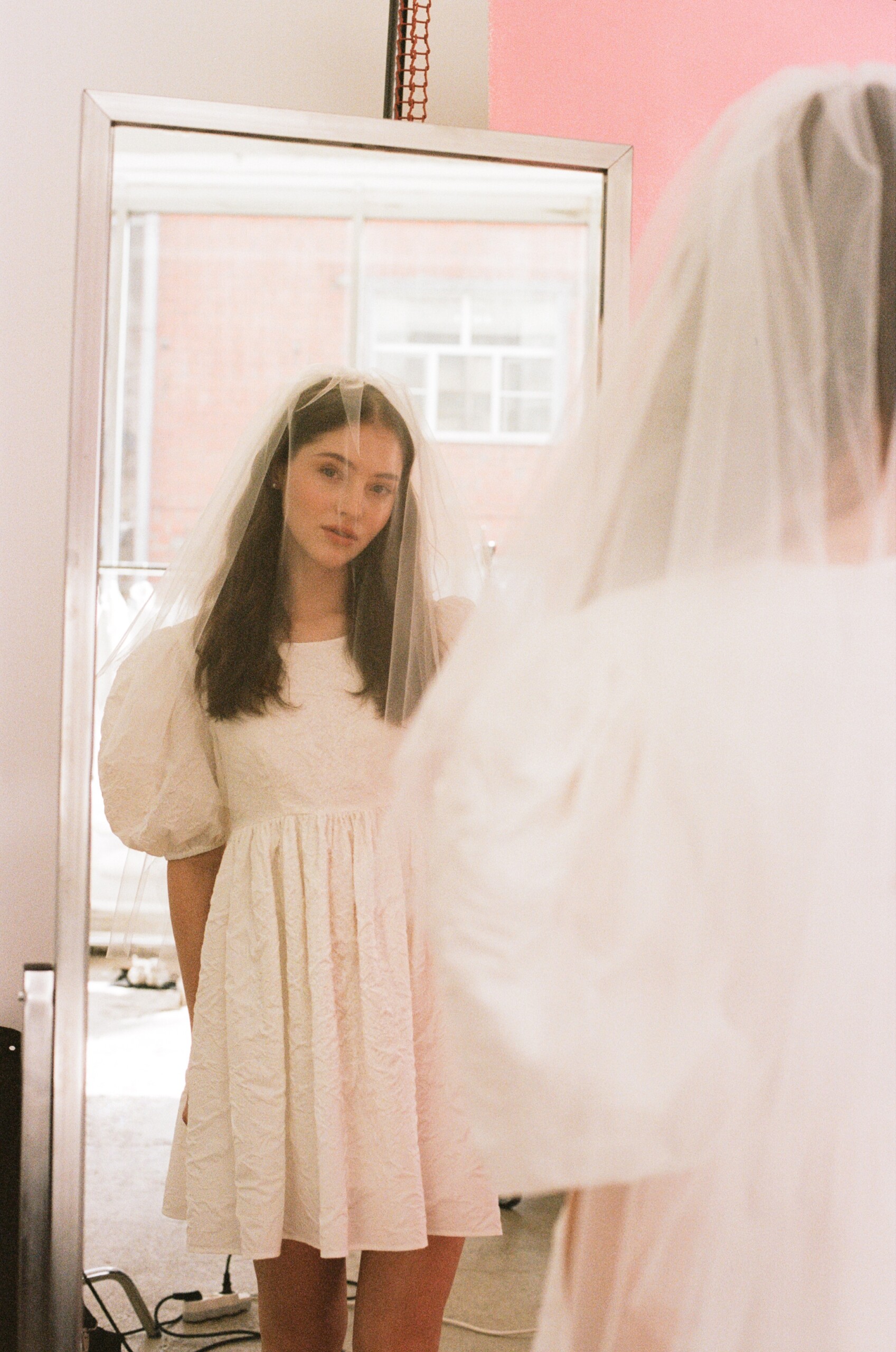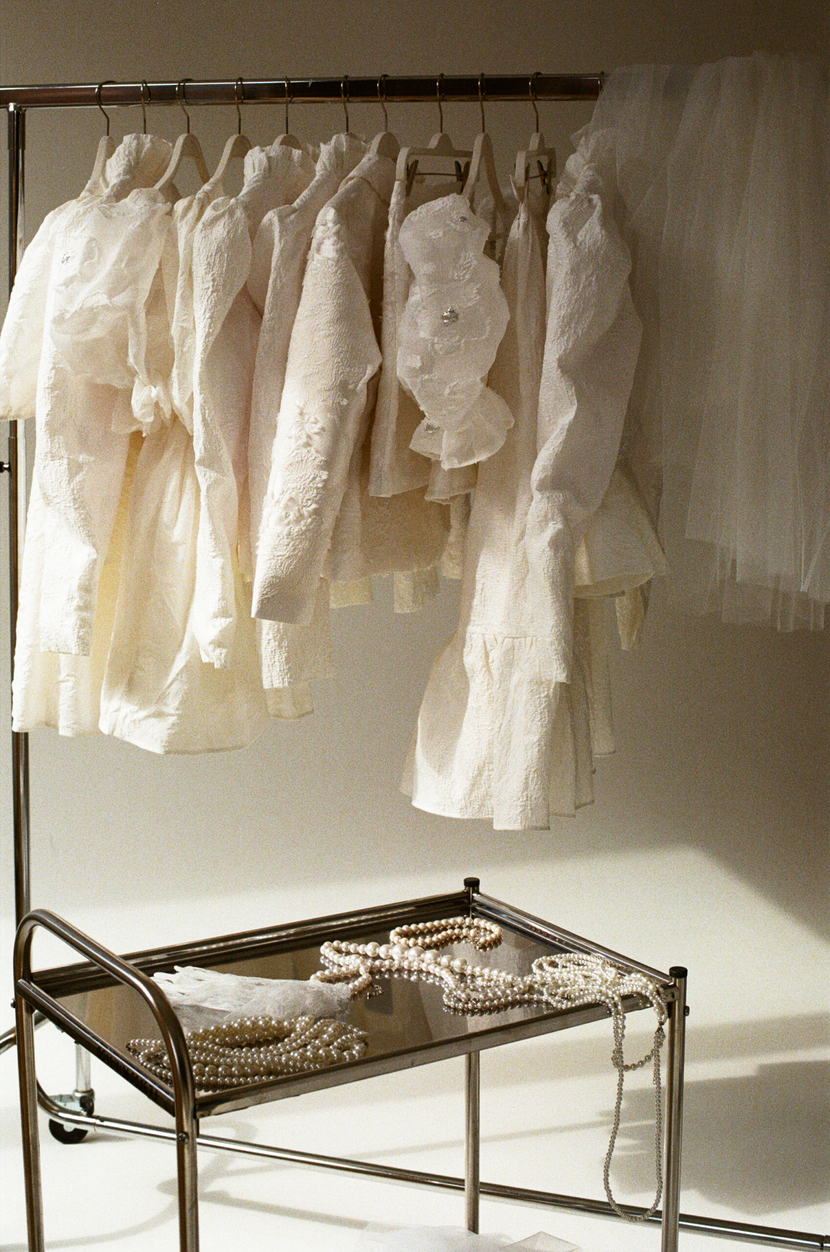 В специальной фотосессии, посвященной запуску Abitu Bridal, марка объединила несколько новых образов с бестселлерами, которые могут подойти невестам, среди них — платья Coco White, Angel White и топ Daisy. Примечательная новинка бренда — мини-платье Coco White с пышной юбкой. Также среди новых силуэтов два белых костюма: комплект White Dove из перламутрового атласного жаккарда с декором в виде «перышек» и комплект White Onyx с жакетом с высоким воротником и миди-юбкой.