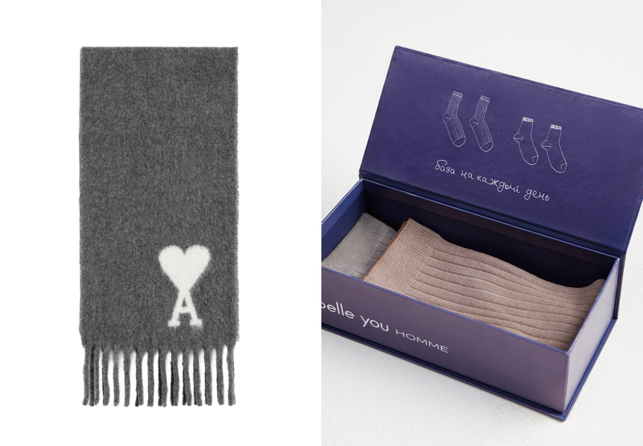 Шарф Ami Paris, 42 000 рублей / набор носков Belle You, 1 799 рублей