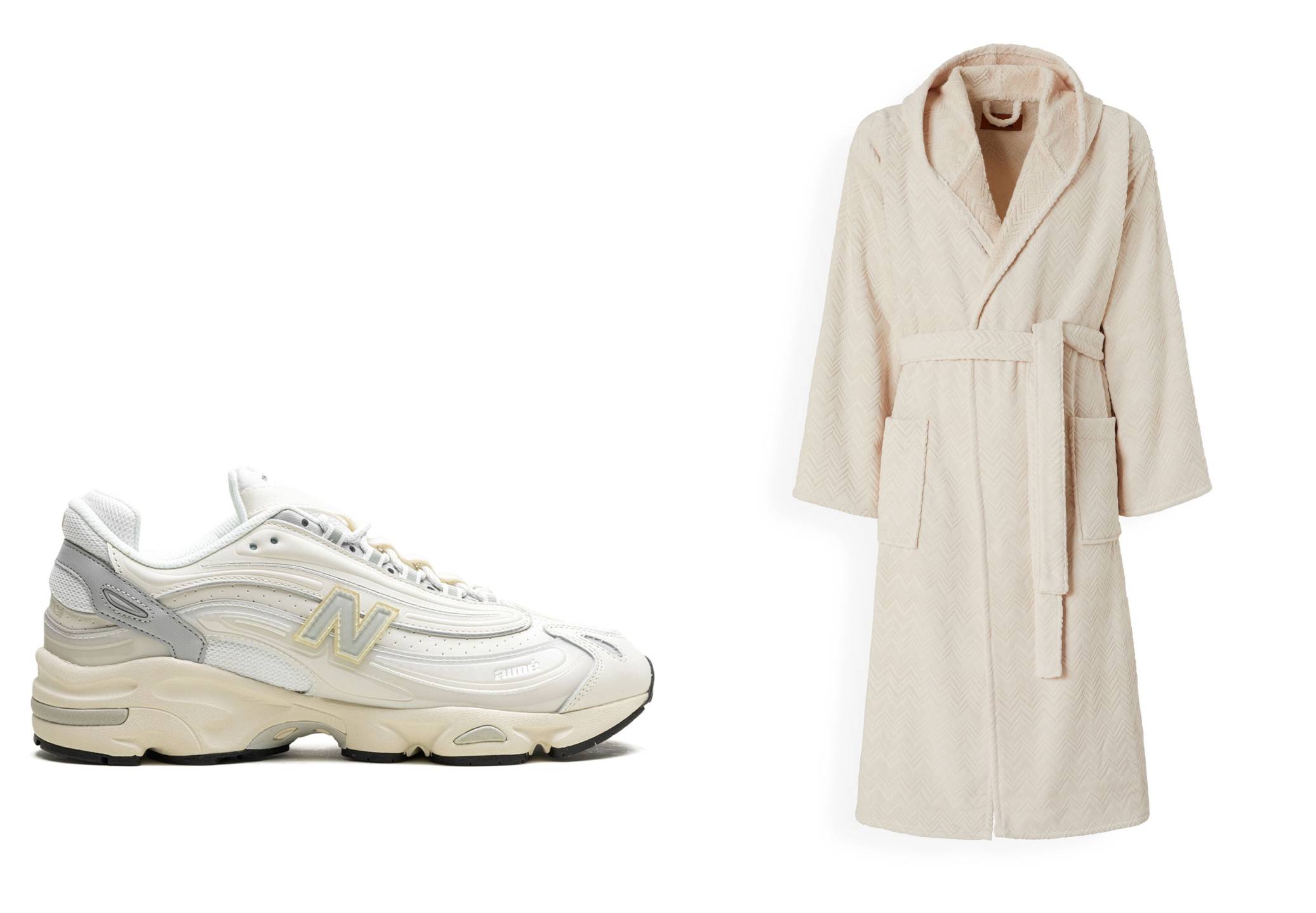 Кроссовки New Balance x Aimé Leon Dore 1000, 35 000 рублей / банный халат Missoni Home, 42 000 рублей