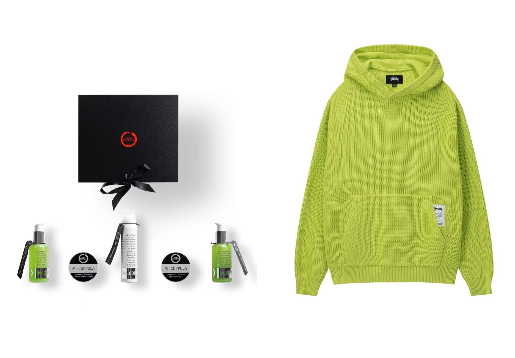 Подарочный набор для мужчин Aldo Coppola, 22 900 рублей / вязаная толстовка Stussy, 22 000 рублей