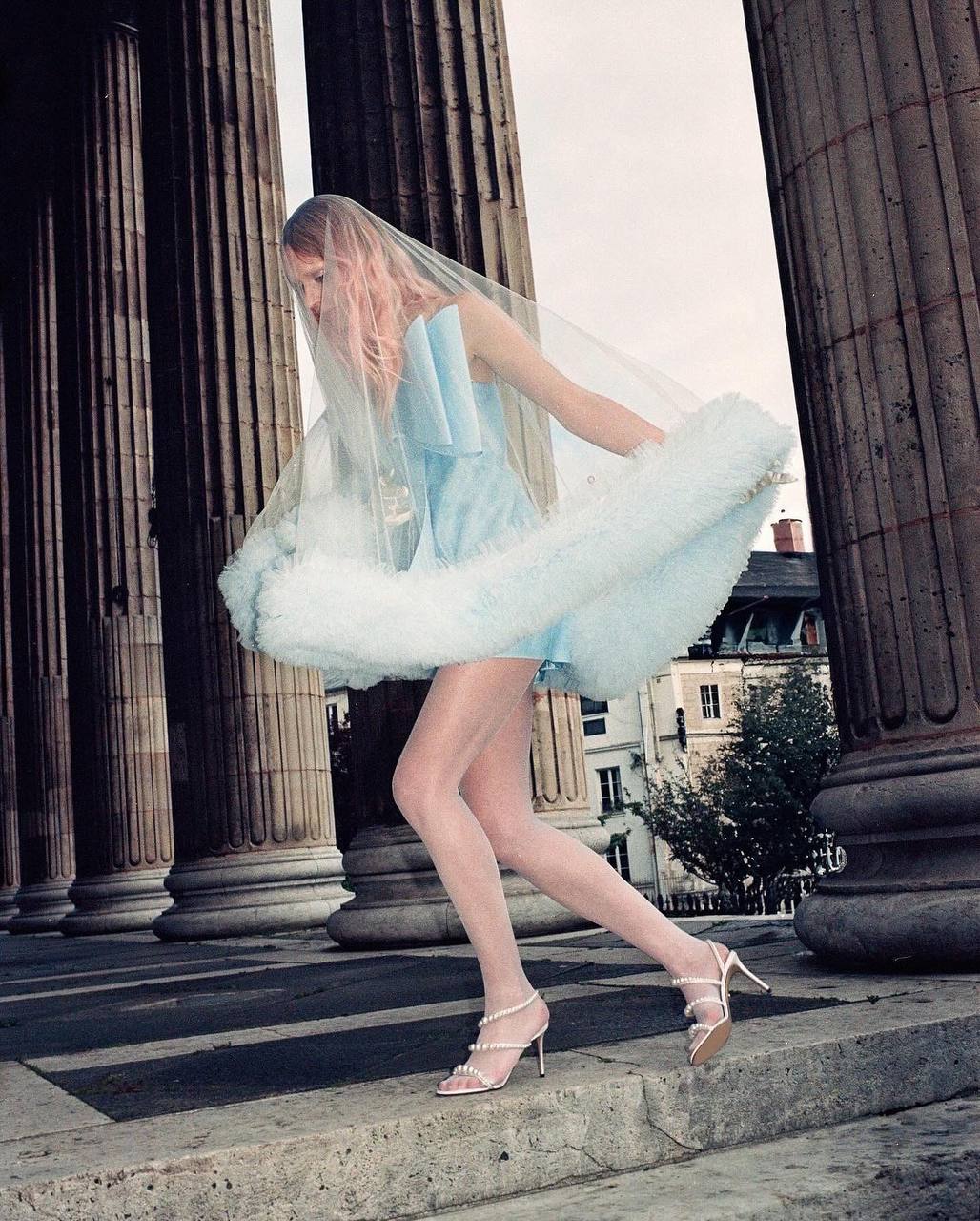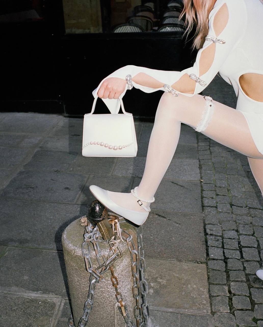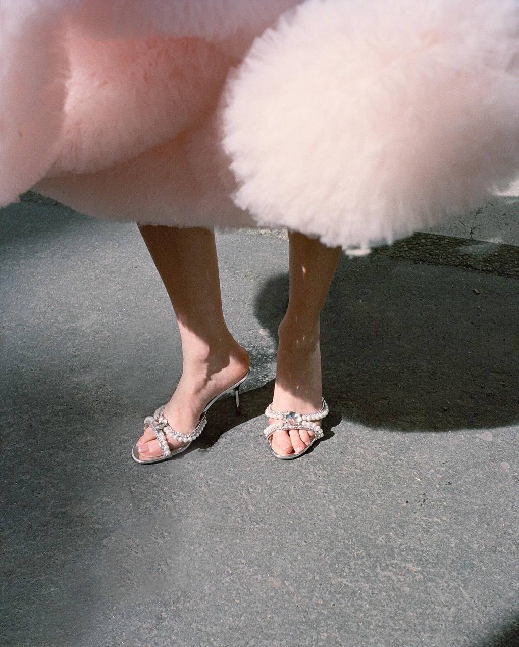 На фоне других брендов MACH & MACH выделяют банты, розовые оттенки, сатин, жемчуг и сверкающие кристаллы. Вот и новая коллекция стала одой максимализму и эстетике барбикор. Съемка была сделана на улицах Парижа. Среди новинок замечены розовые лодочки с объемными бантами, белые балетки, босоножки с жемчужными ремешками и мюли с прозрачным верхом, инкрустированные камнями и жемчугом. Все предметы из коллекции органично впишутся в гардероб современной невесты и точно произведут вау-эффект на гостей свадьбы.
