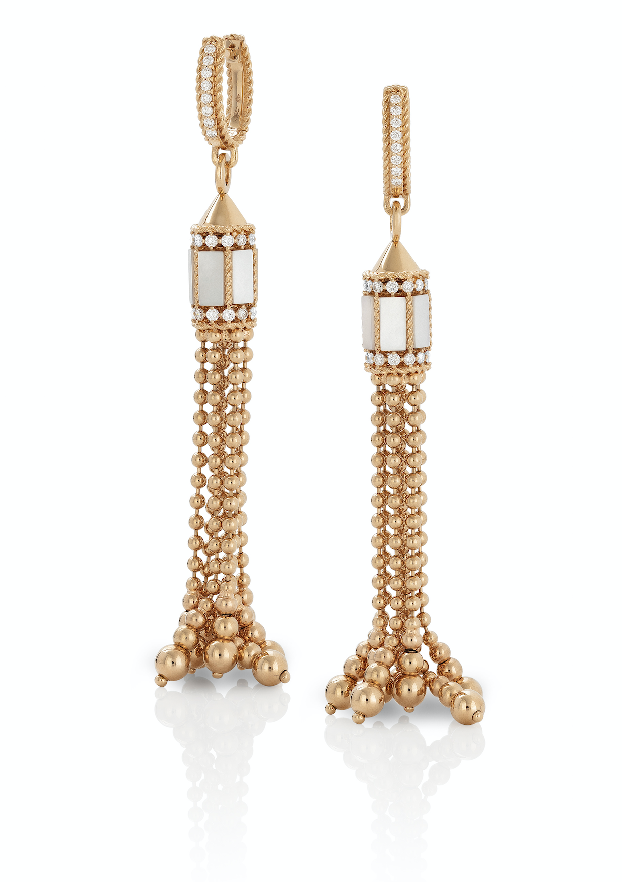 Roberto Coin, серьги из коллекции Art Deco, розовое золото, перламутр, бриллианты, рубины
