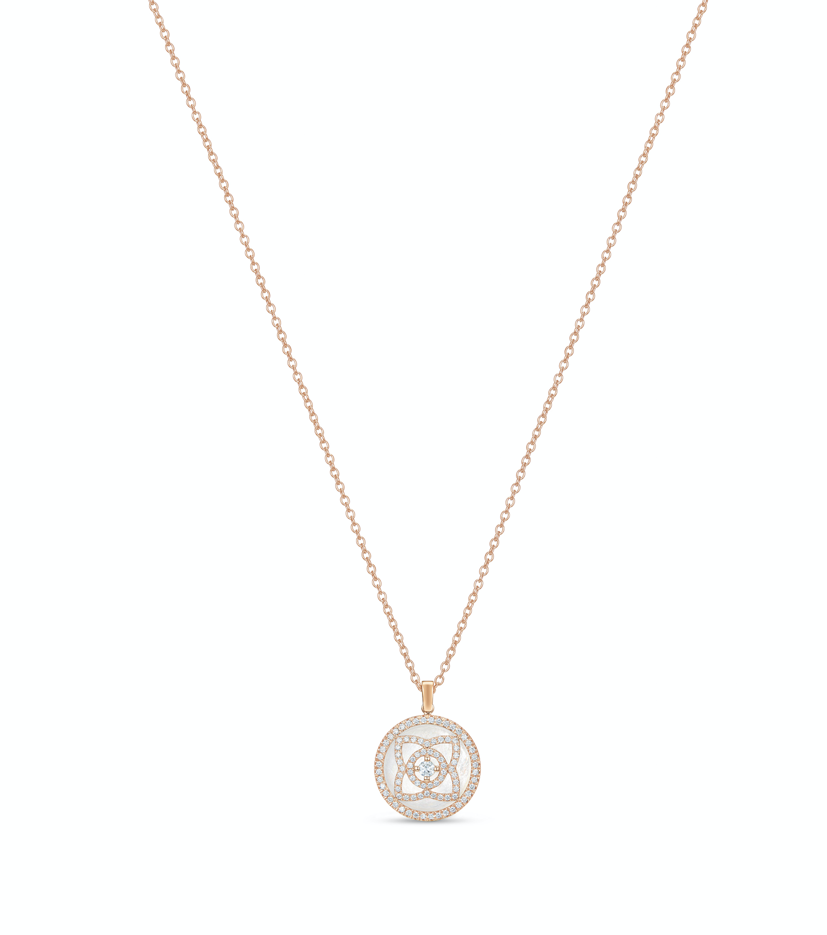 De Beers, подвеска из коллекции Enchanted Lotus, розовое золото, белый перламутр, бриллианты