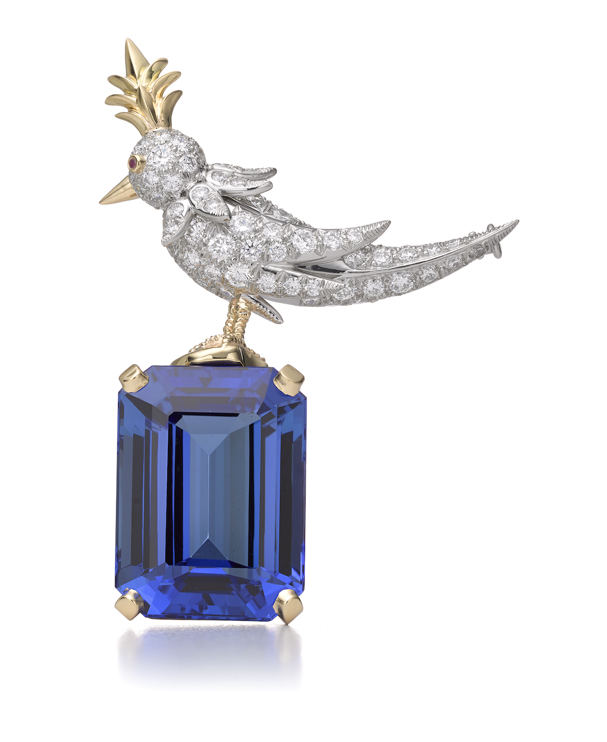 Tiffany & Co., брошь Bird on a Rock из коллекции Tiffany & Co. Schlumberg, золото, платина, танзанит, бриллианты