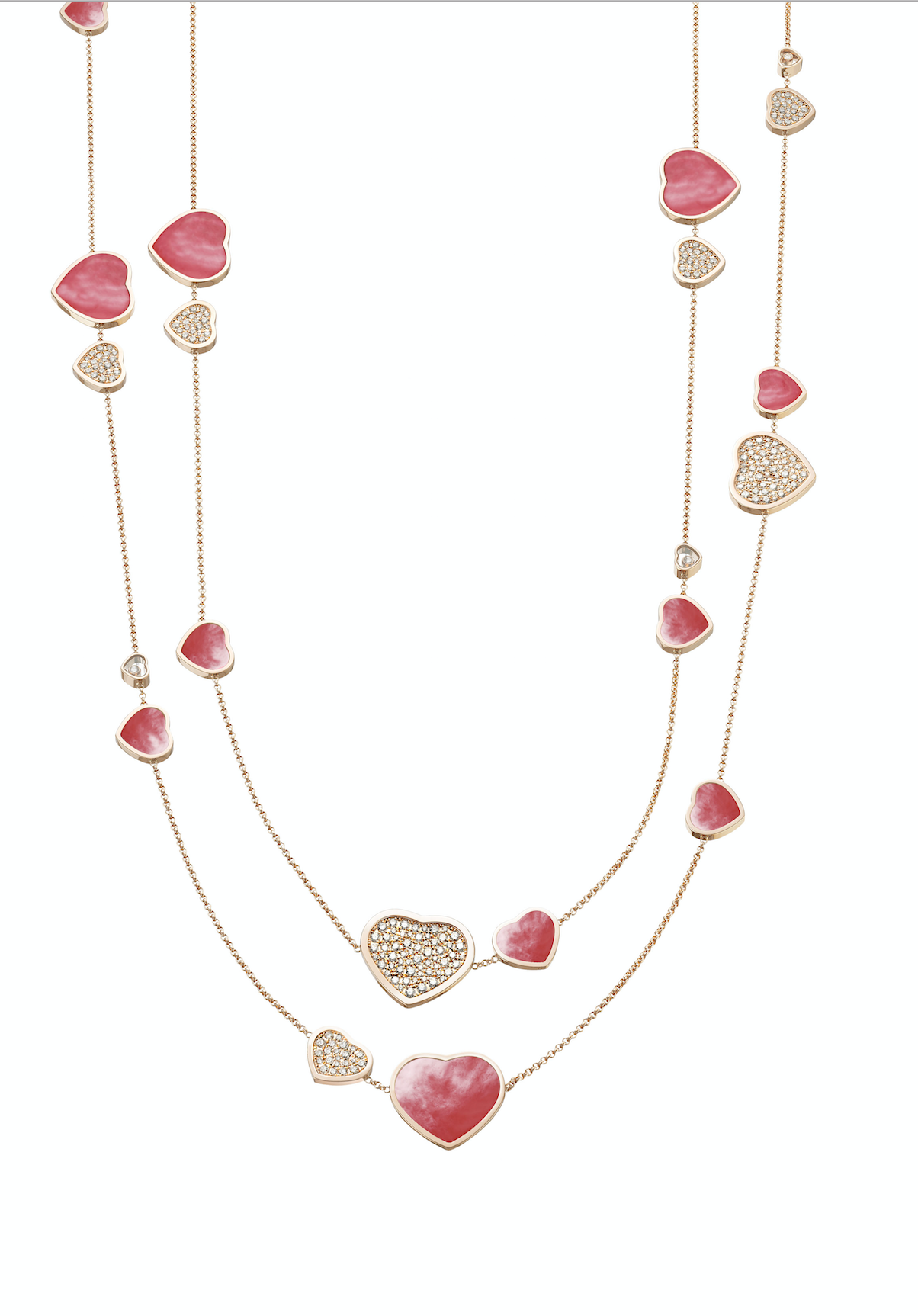Сhopard, колье Happy Diamonds, розовое золото, розовый перламутр, бриллианты
