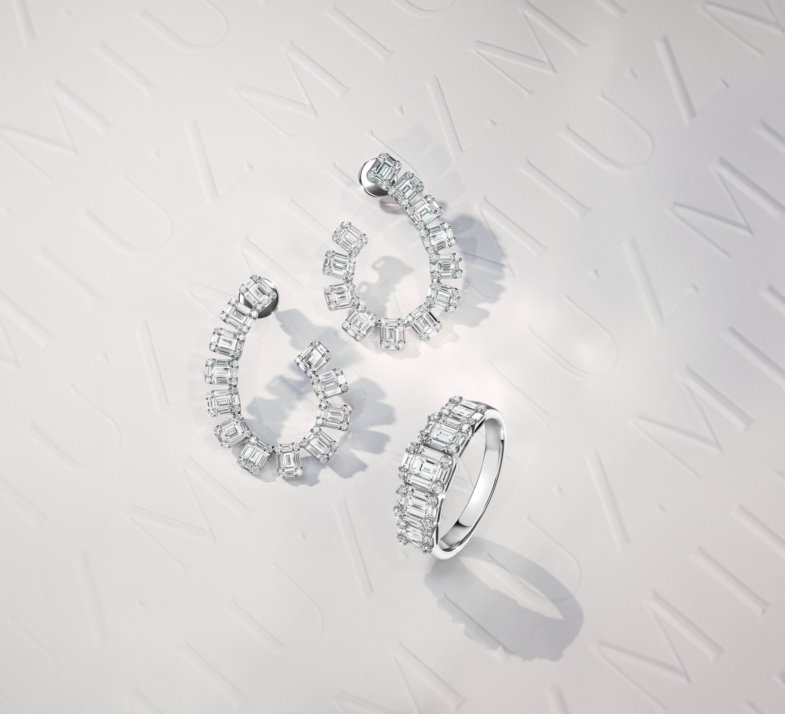 Для более игривого образа, мы предлагаем добавить кокетливый акцент в виде геометричного комплекта из коллекции Le Chic, состоящий из серег и кольца. Их отличает необычное сочетание бриллиантов разной огранки и размеров – крупных камней «багет» и классических круглых, представляющее собой уникальную драгоценную мозаику. Такой нетривиальный дизайн создает иллюзию графической головоломки, которую молодоженам предстоит разгадать вместе. И мы уверены, на эти заманчивые сверкающие «крючки» попадется тот самый, любящий и надежный спутник вашей счастливой семейной жизни.