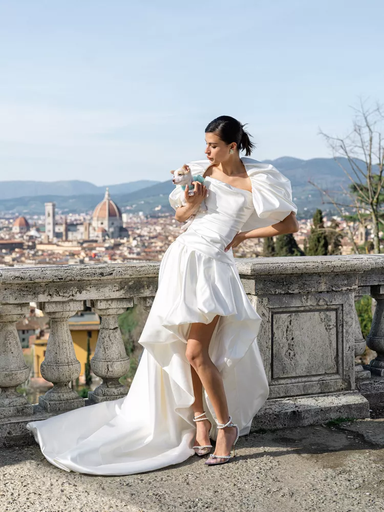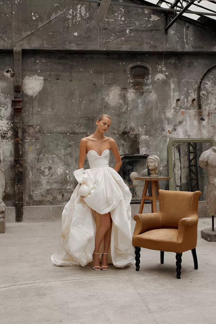 Юбка-баллон снова возвращается в модную повестку, но на этот раз силуэт был замечен не на стритстайле, а в свадебных коллекциях. Danielle Frankel, Dana Harel и Monique Lhuillier показали свадебные платья с объемным подолом. Это отличный прием для тех, кто хочет наряд с объемной юбкой, но кому не нравятся классические варианты из фатина.