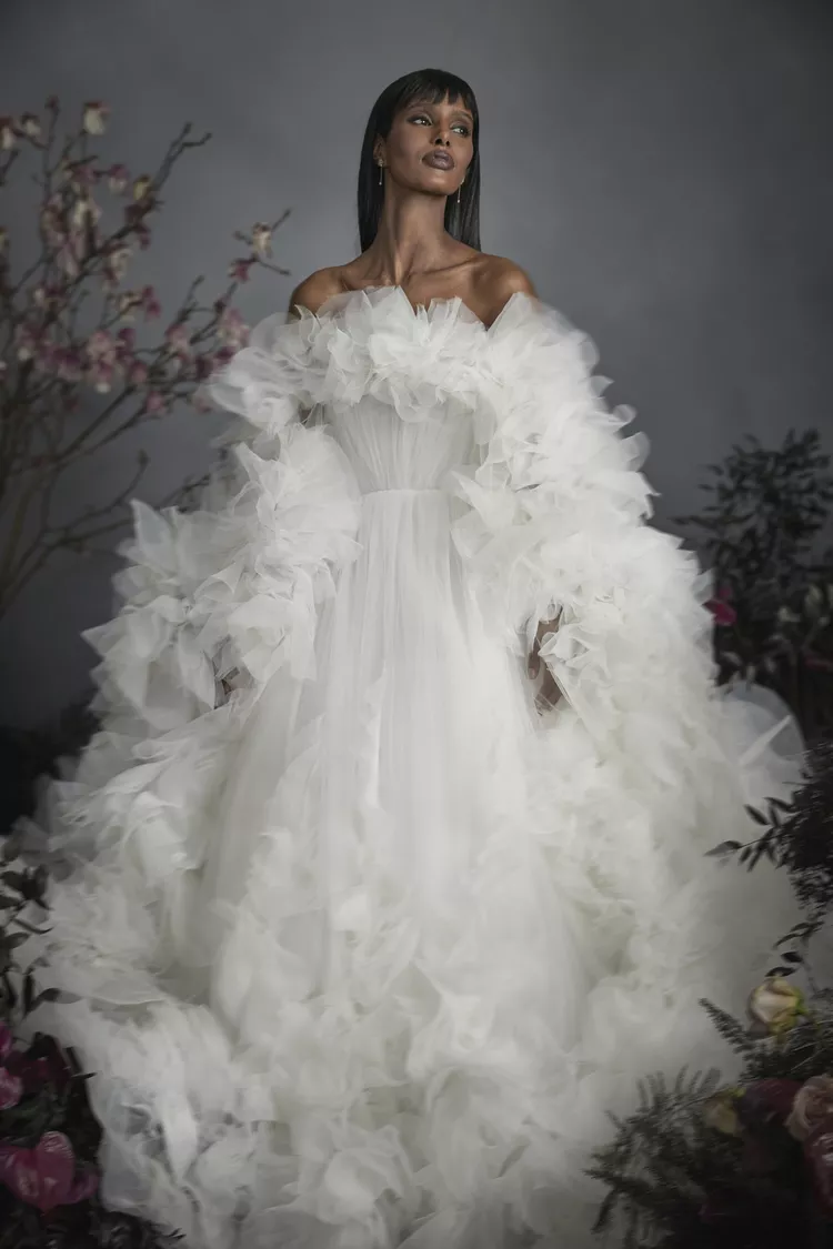 В сезоне весна 2025 многие дизайнеры решили использовать тюль и органзу для создания «воздушных» силэутов. Взгляните на невесомые наряды Marchesa, Honor и Nordeen — бренды представили платья, которые помогут создать невесомый ангельский образ.