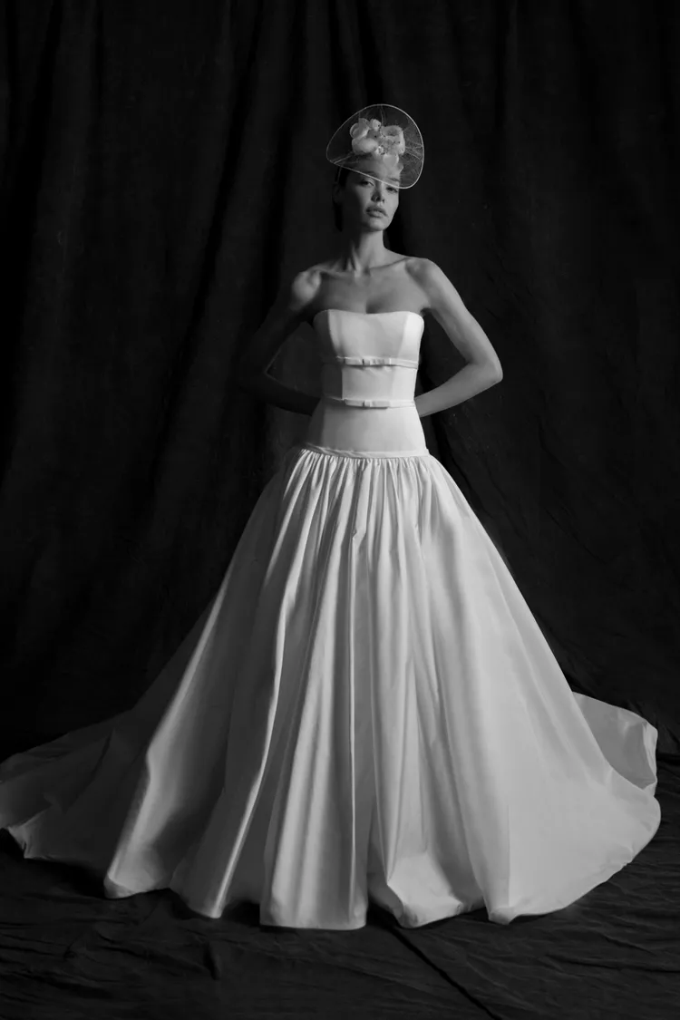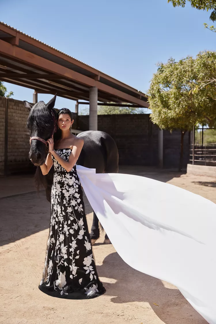 Nadia Manjarrez Bridal, Alejandra Alonso Rojas Bridal и Louvienne x Scorcesa не побоялись приправить свадебные наряды черным цветом. Дизайнеры талантливо сыграли на контрастах и добавили платьям нотку драматизма. Обратите внимание на крупные черные банты и длинные перчатки — такие акценты в свадебных образах выглядят очень смело и свежо.