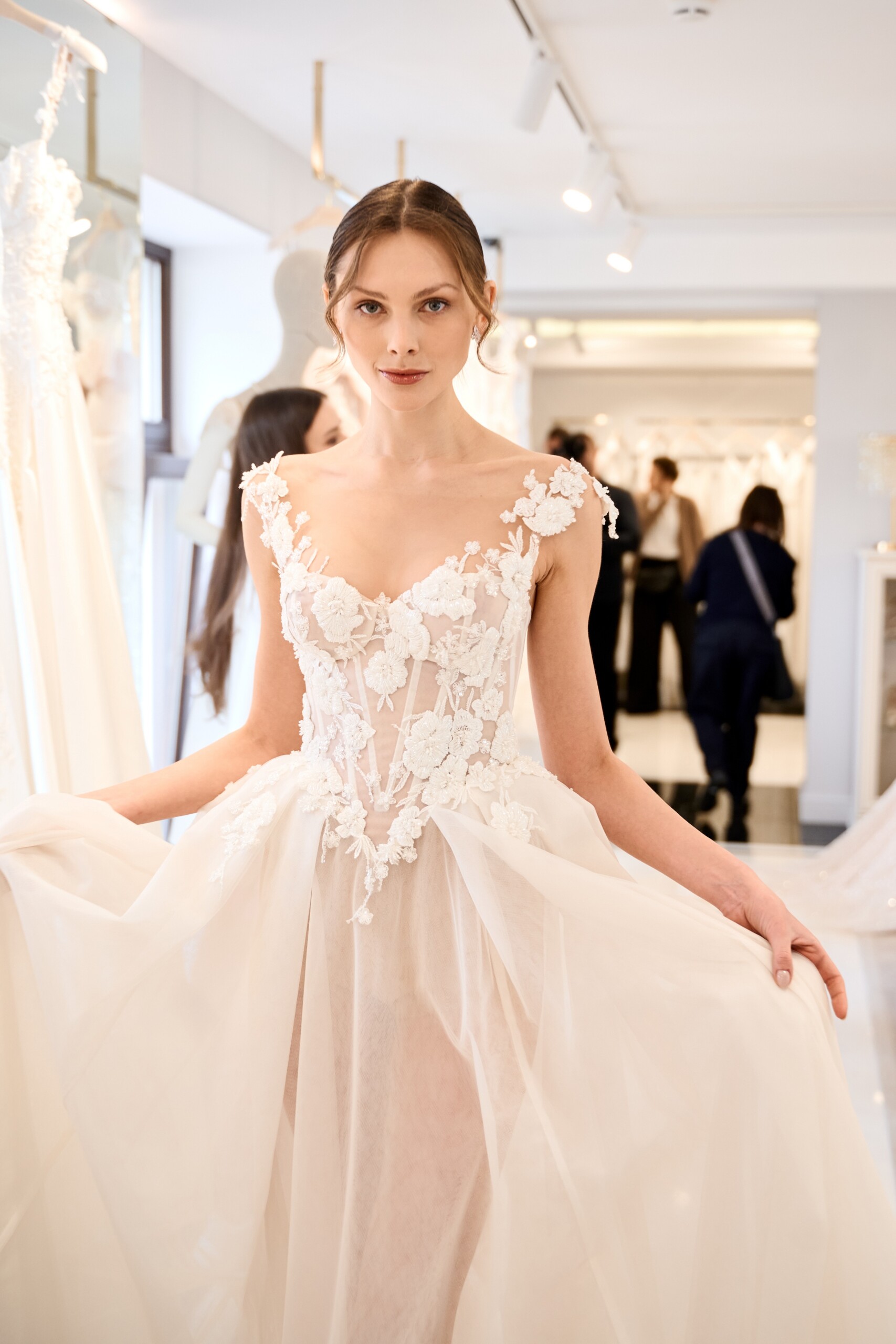 В бутике эксклюзивно представлены в России известные мировые бренды (Alon Livne, Galia Lahav, Reem Acra). Кроме того, Blanche Bridal предоставляет услуги собственного ателье — Blanche Atelier, где можно заказать платье любой сложности или полностью изменить уже имеющееся.