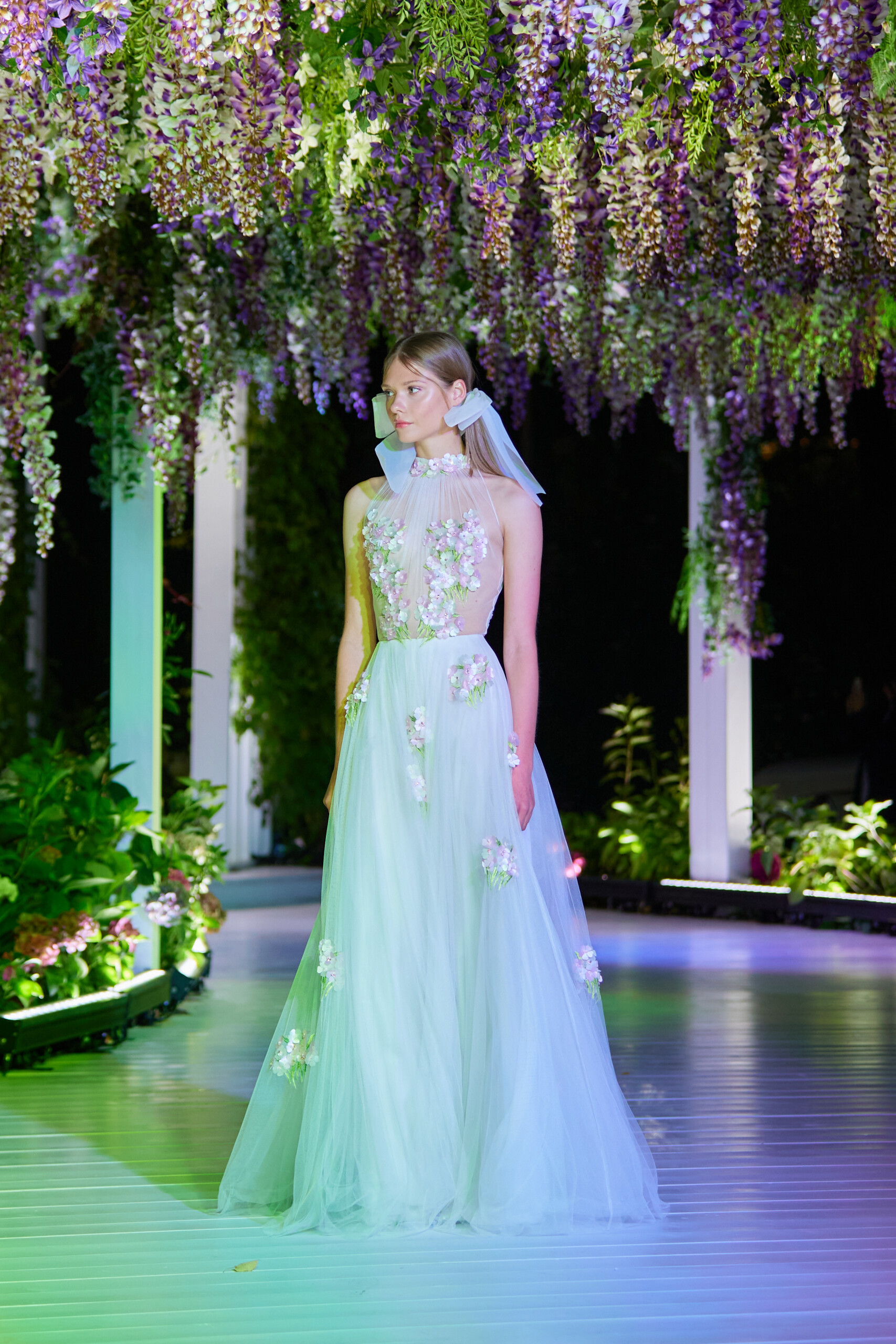 Стилистом показа была Алёна Пушилина. Она рассказала, что задачей было подарить бренду новое дыхание, не забывая о наследии Валентина Юдашкина. Один из лейтмотивов коллекции — банты, которыми были украшены многие платья.