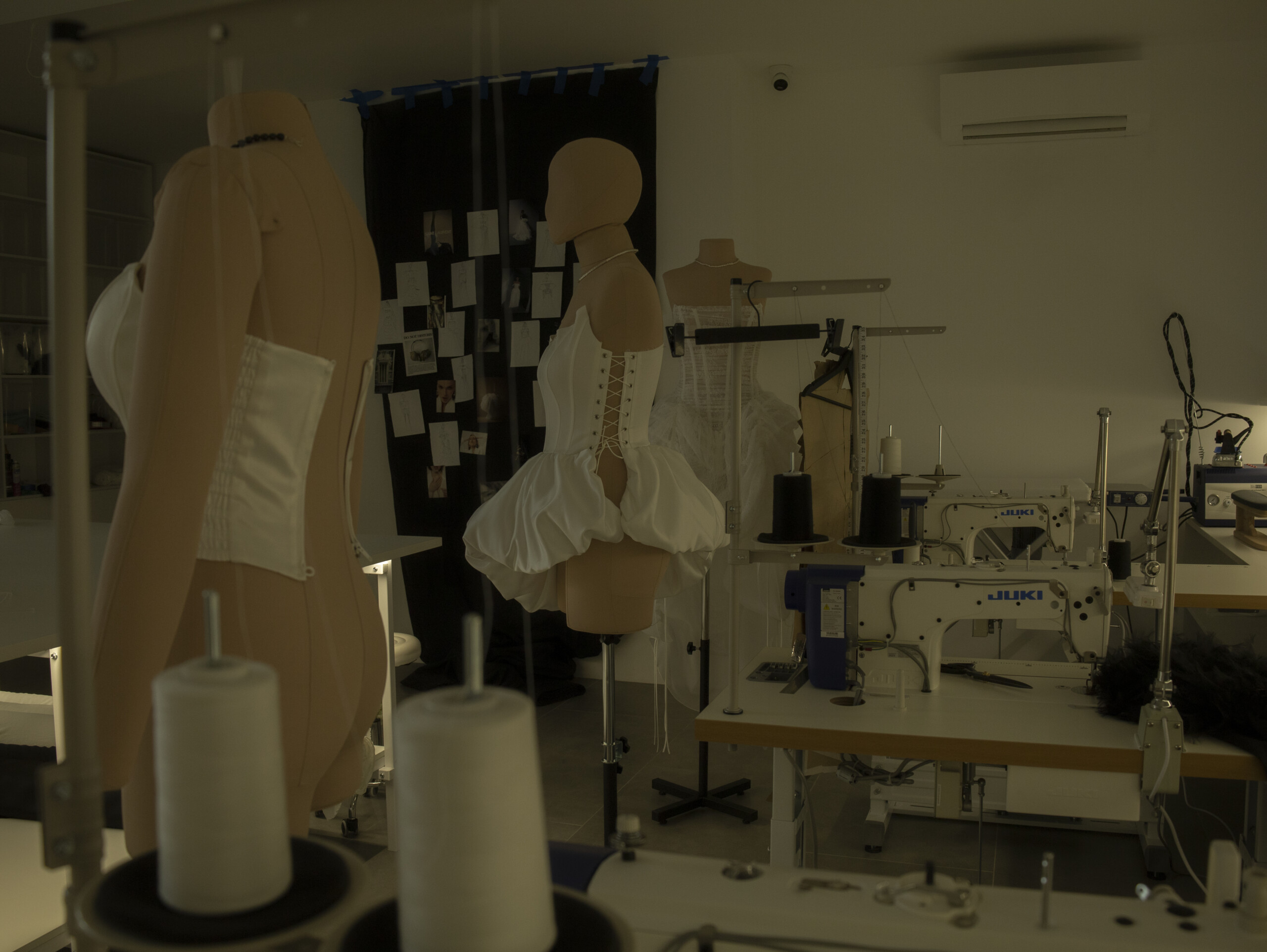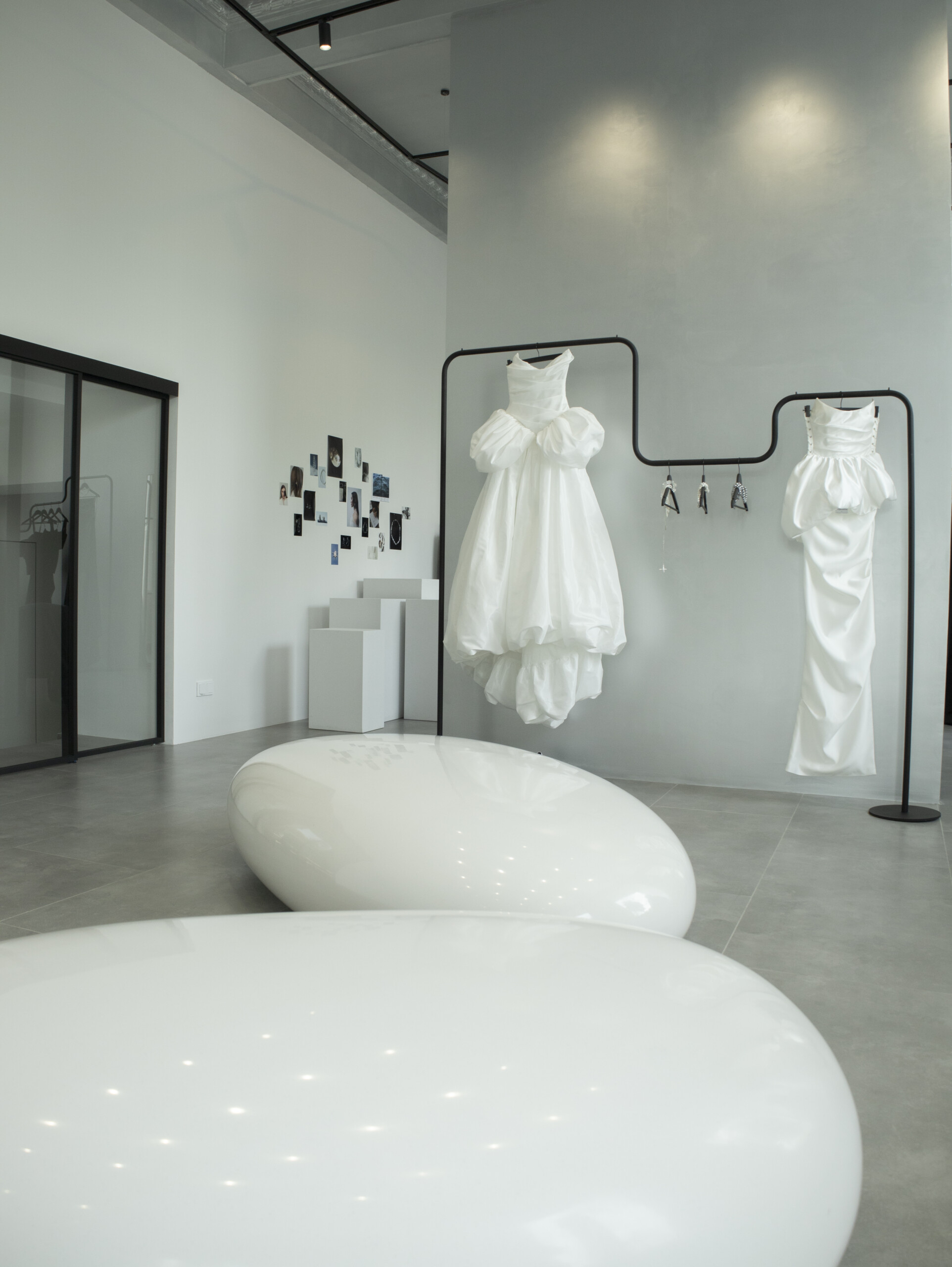 «Мы ушли от традиционных свадебных салонов, сделав это место, подобно музейному пространству, гибким и меняющемся, адаптирующимся к каждой коллекции, это синтез моды и искусства. Открытое ателье показывает, что мы не скрываем свои внутренние процессы. Здесь много уникальных и кастомизированных предметов интерьера, которые отражают индивидуальность и нестандартность проекта», — делится дизайнер и основатель бренда Arina Boganova.