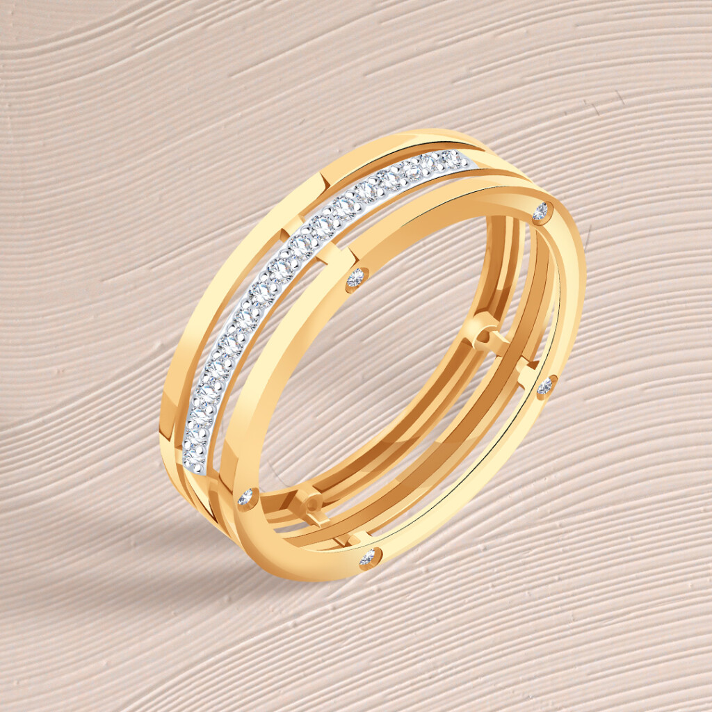 Украшения созданы по специальной технологии с алмазной огранкой – на золото наносят специальный рельеф разного формата, который сверкает при любом освещении, создавая особенную игру бликов. Крупные и четкие геометрические линии на ободке колец словно переплетаются, объединяя два любящих сердца.