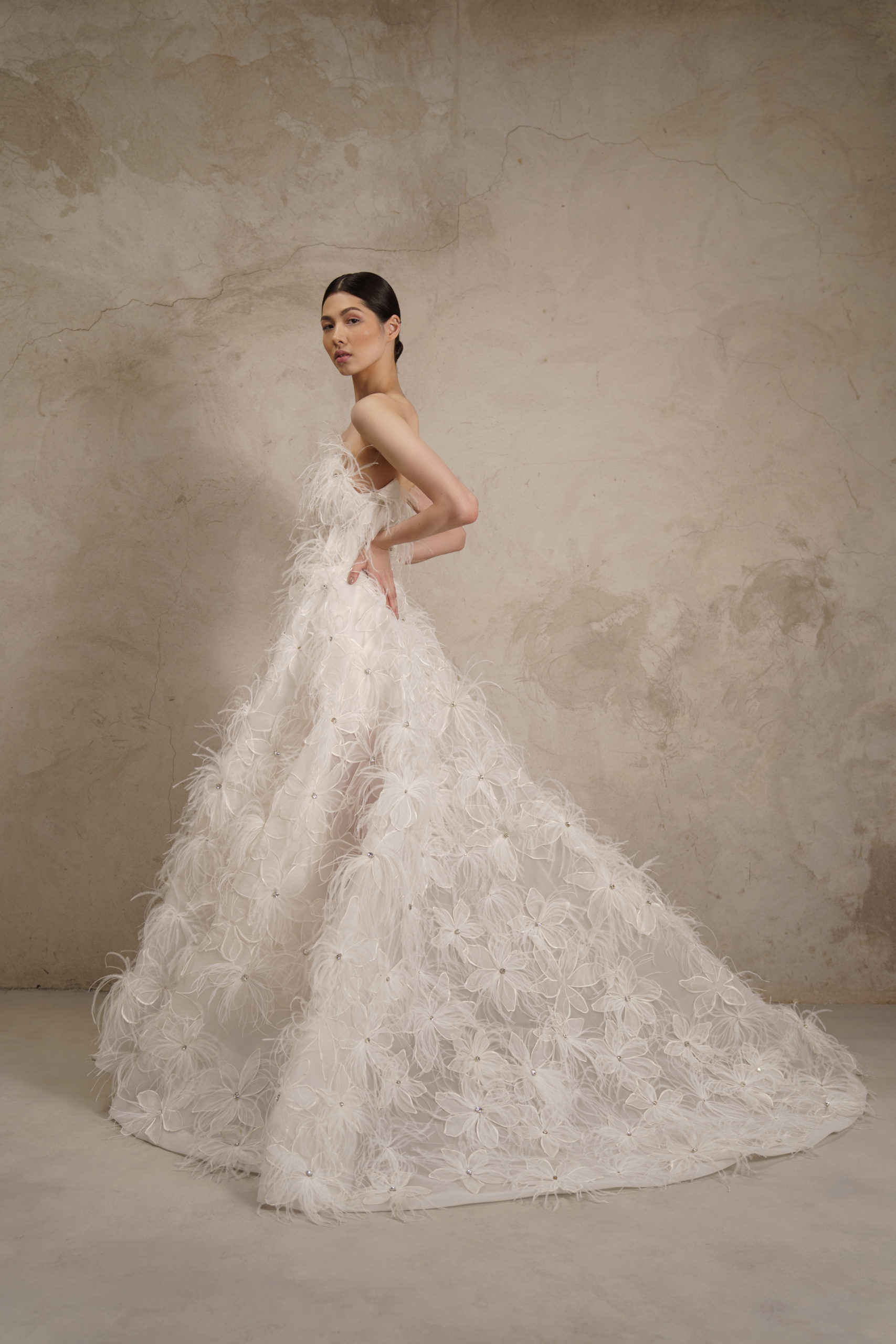 Ателье Татьяны Кочновой в следующем году исполняется десять лет, и за этот срок дизайнер из Санкт-Петербурга успела немало. Например, продемонстрировать, что свадебное платье не обязано быть классическим и вневременным. Оно вполне может следовать подиумным тенденциям, не теряя своей сказочной торжественности. И коллекция этого осеннего сезона идеальное тому доказательство: в ней есть и белоснежные мини, специально придуманные для юных и бесстрашных, и брючные костюмы с крупными скульптурными ландышами, и кринолины из перьев.