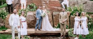 Величественные камни и негромкий водопад на фоне вековых сосен и голубого неба стали удачными декорациями свадебной церемонии. Звучали специально написанные для этого дня песни в русском народном стиле, а костюмы, реквизит и мизансцены создавали эстетику праздника Ивана Купалы.