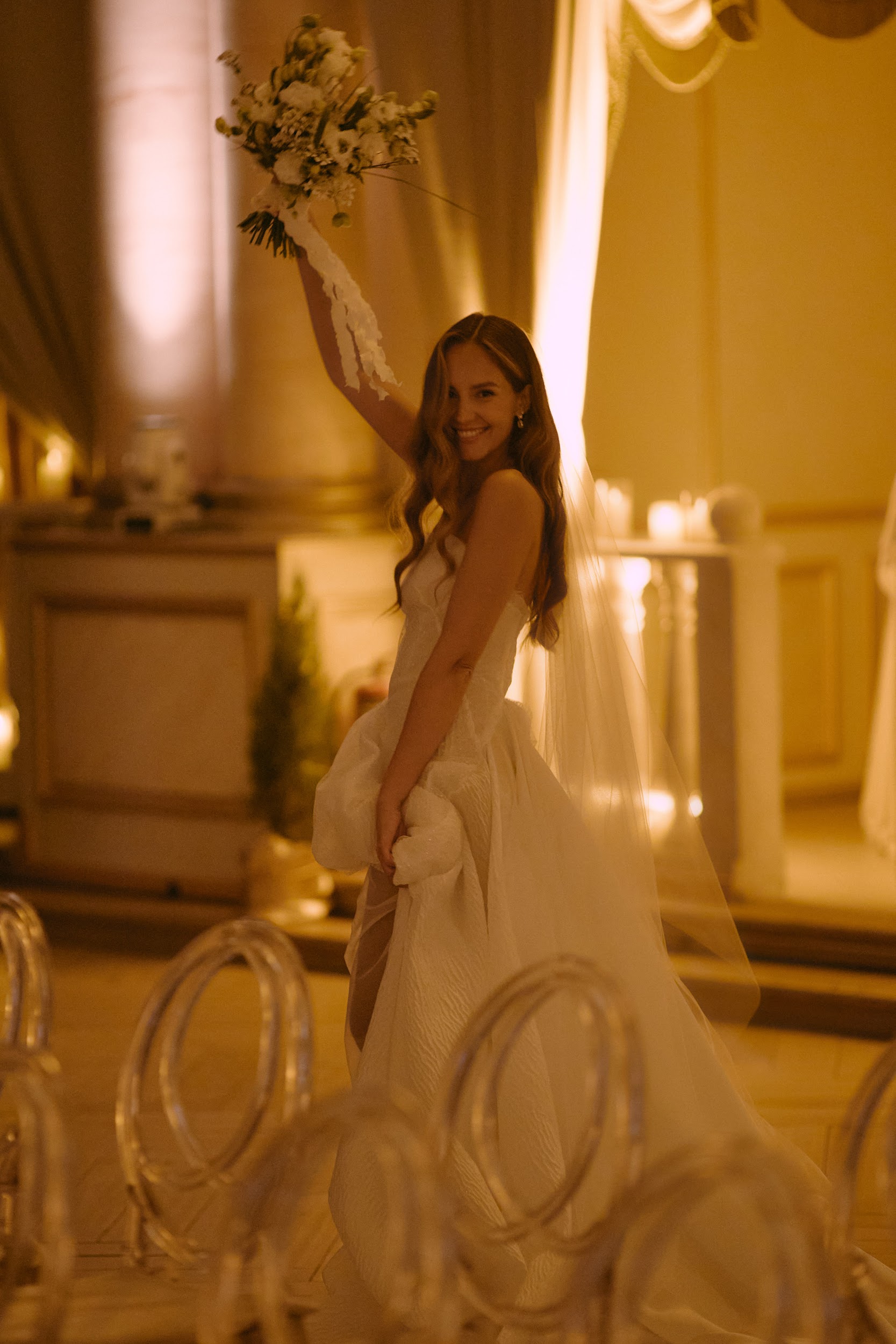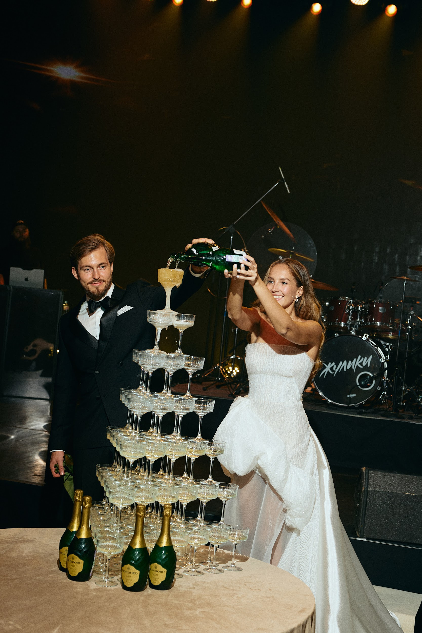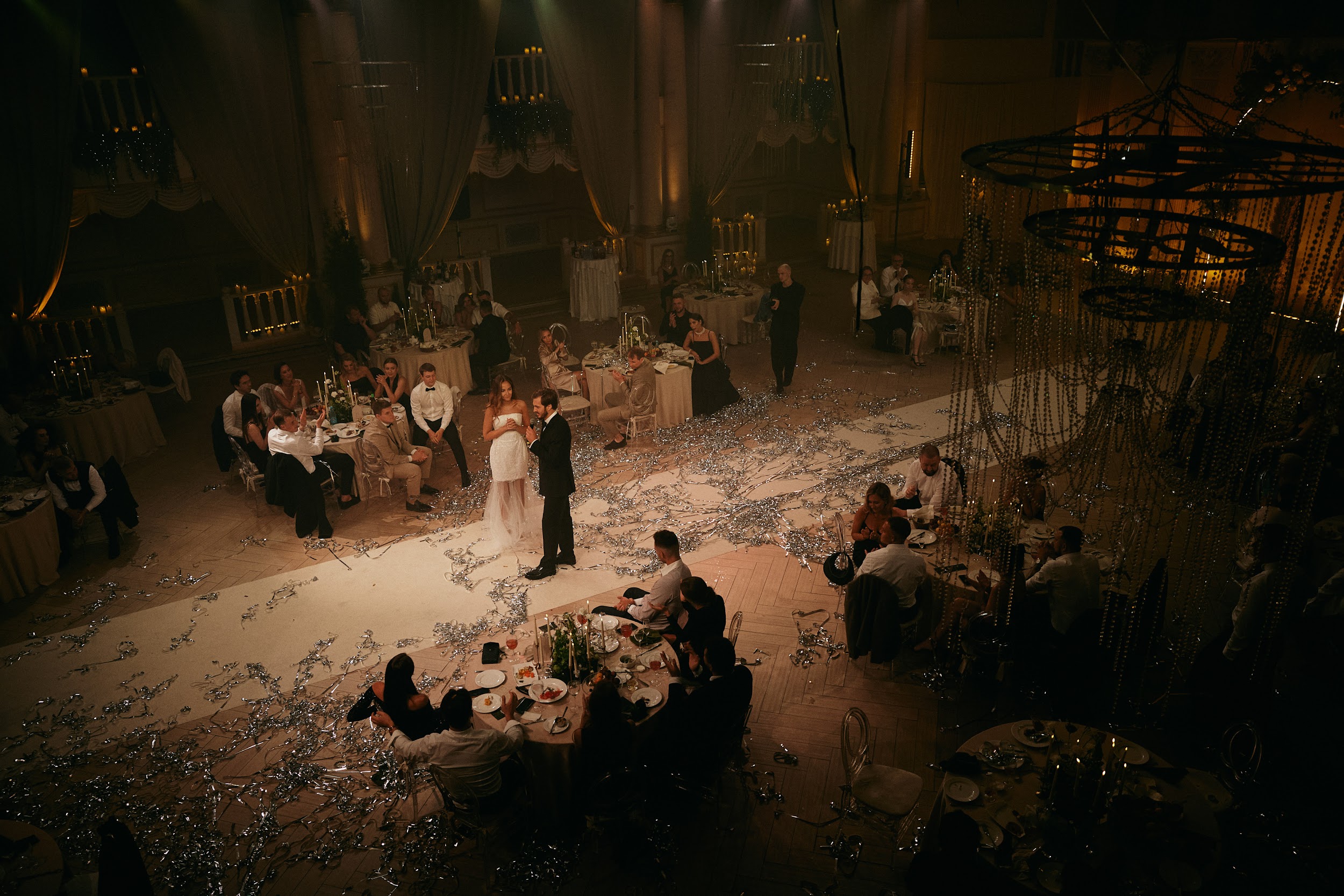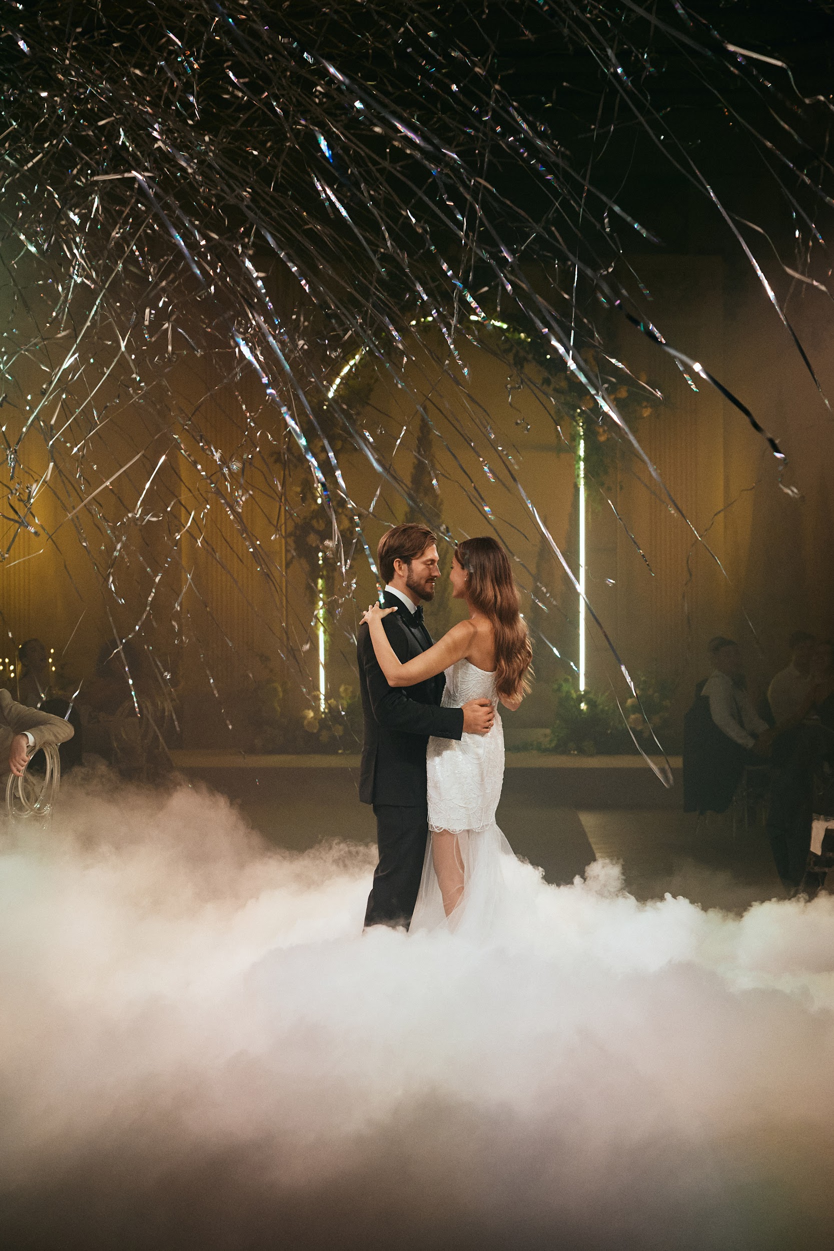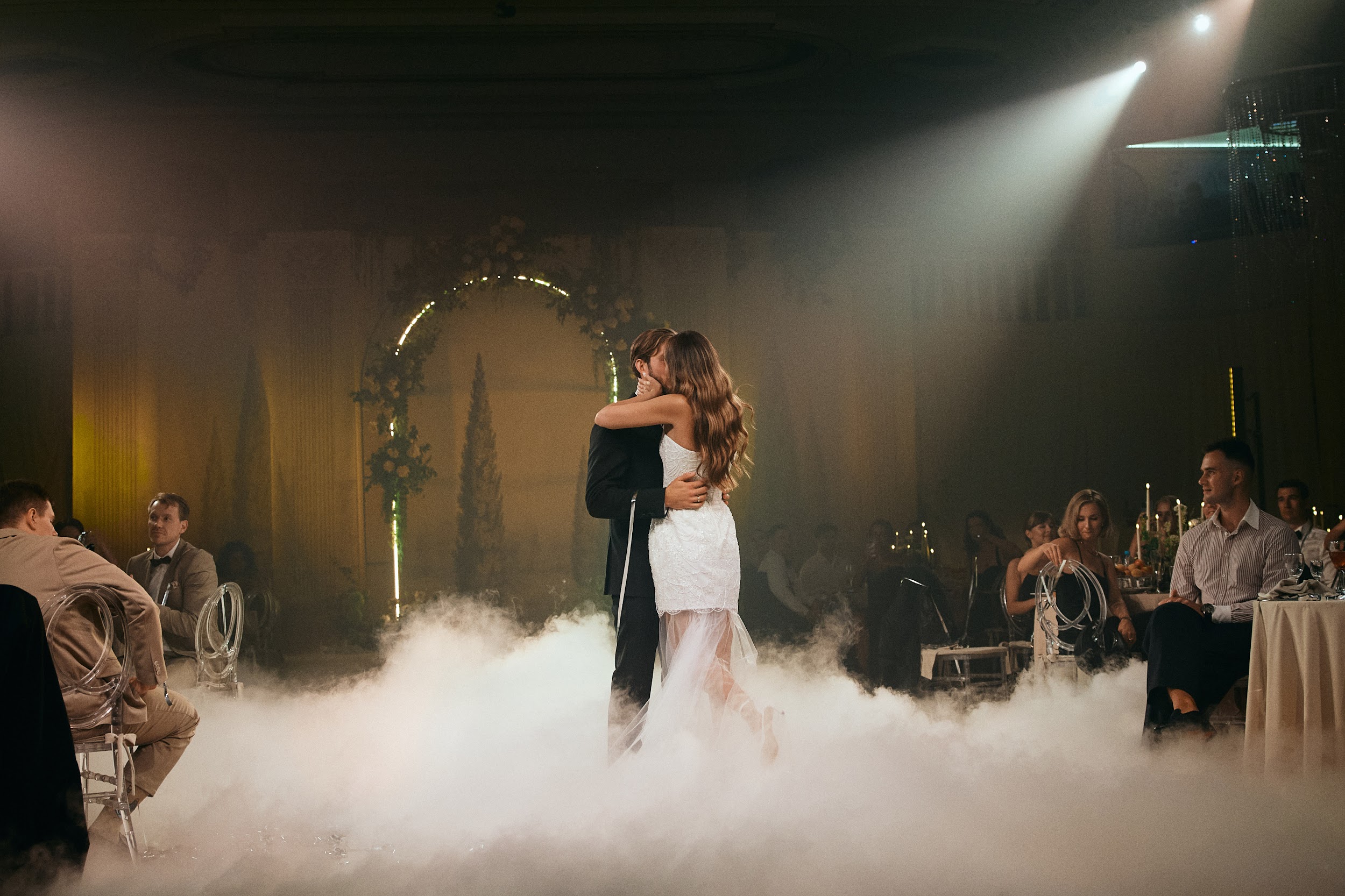 Кульминация любви — танец. С балконов сыпались переливающиеся серебром серпантины, молодожены кружились в дыму, словно в облаках — все действие напоминало романтический фильм. О таких моментах говорят: эмоции на всю жизнь.