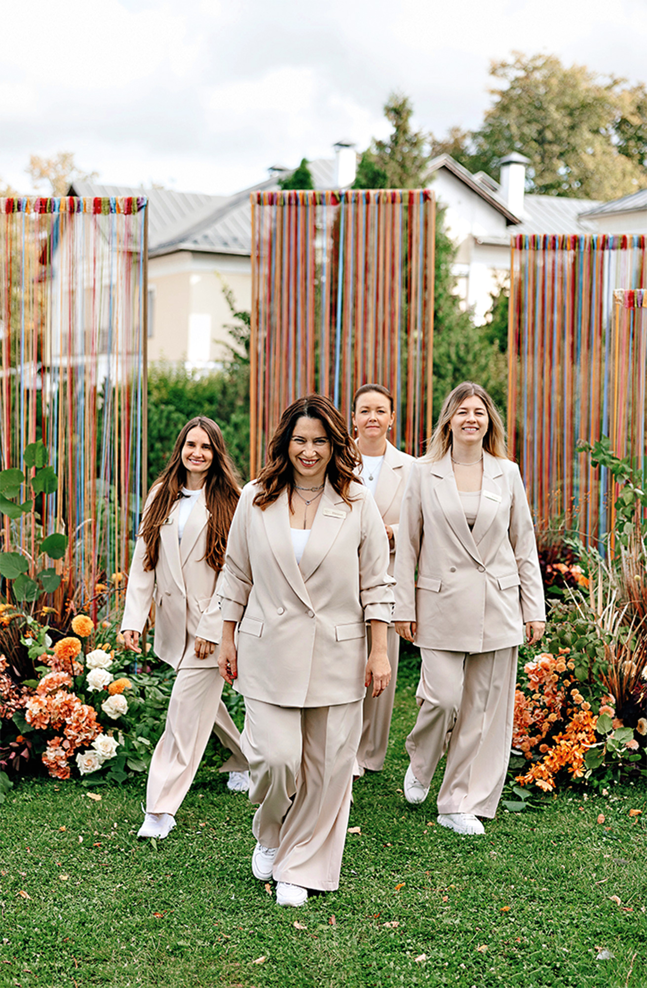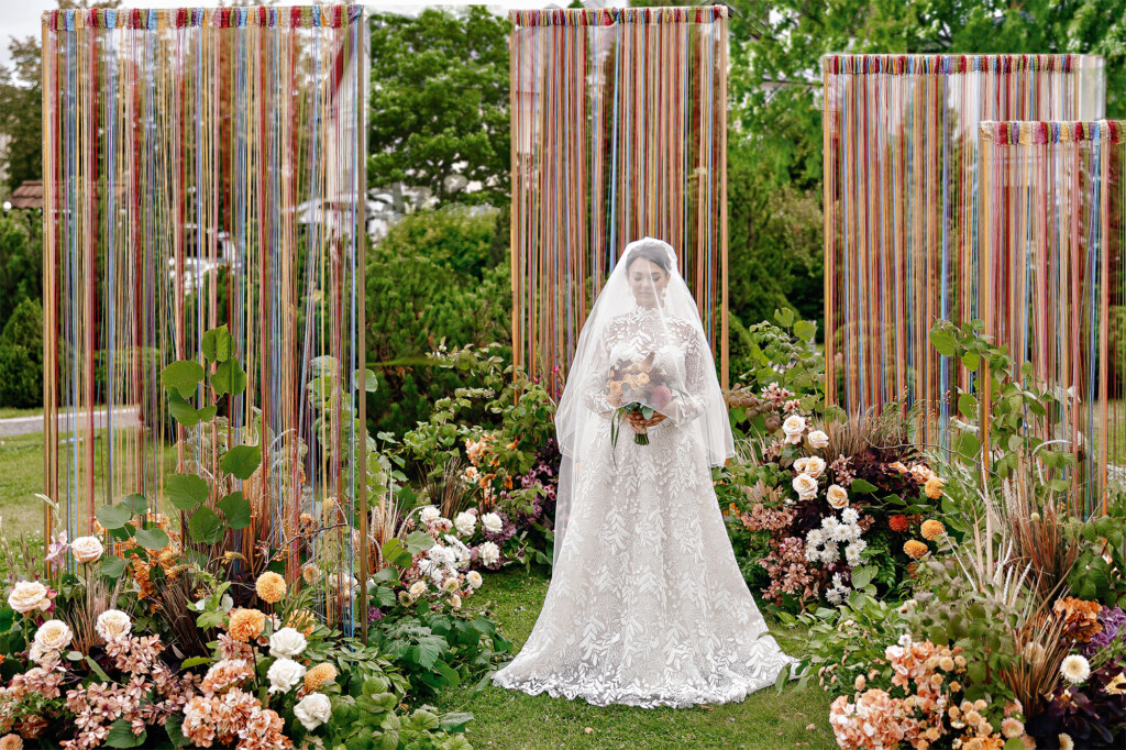 Идея сделать свадьбу в Суздале, самом волшебном русском городке, владела воображением команды Nova events agency давно. Поэтому когда Андрей и Елена согласились на предложение организаторов, даже не побывав там, все были счастливы. И концепция «Любви расписные узоры» оказалась очень органична и паре, и городу, и общему настроению. Ее отражение было во всем: в элементах свадебного выезда, в кружеве платья невесты, в ее образе с косами, в ансамбле русской песни и танца, в иммерсивных обрядах, в которых участвовали и молодые, и их гости. Но самым концептуальным стал арт-объект из ниток — пока еще не сплетенных ни в какие узоры, — на фоне которого пара обменялась клятвами и вошла в новую жизнь.