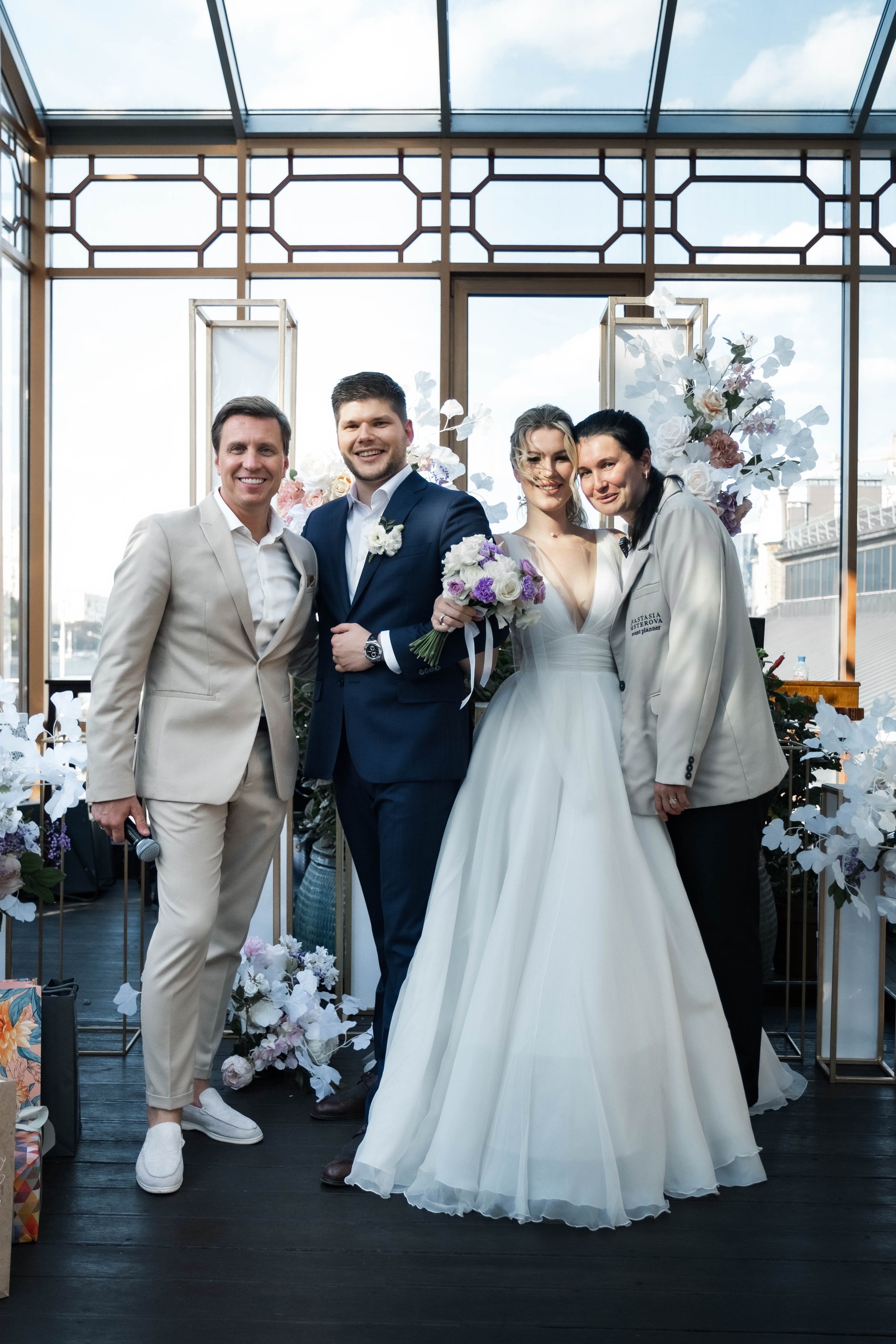 Подготовка к свадьбе заняла чуть более полугода. Основным критерием пары было — «хотим, чтобы это мероприятие запомнилось». В основе концепции свадьбы- яркие цвета и краски, лепестки роз повсюду (они олицетворяли их яркую и красочную любовь), качели на подвесе, которые говорили о пережитом прошлом и, конечно, прозрачная крыша. Как символ, олицетворяющий дом.