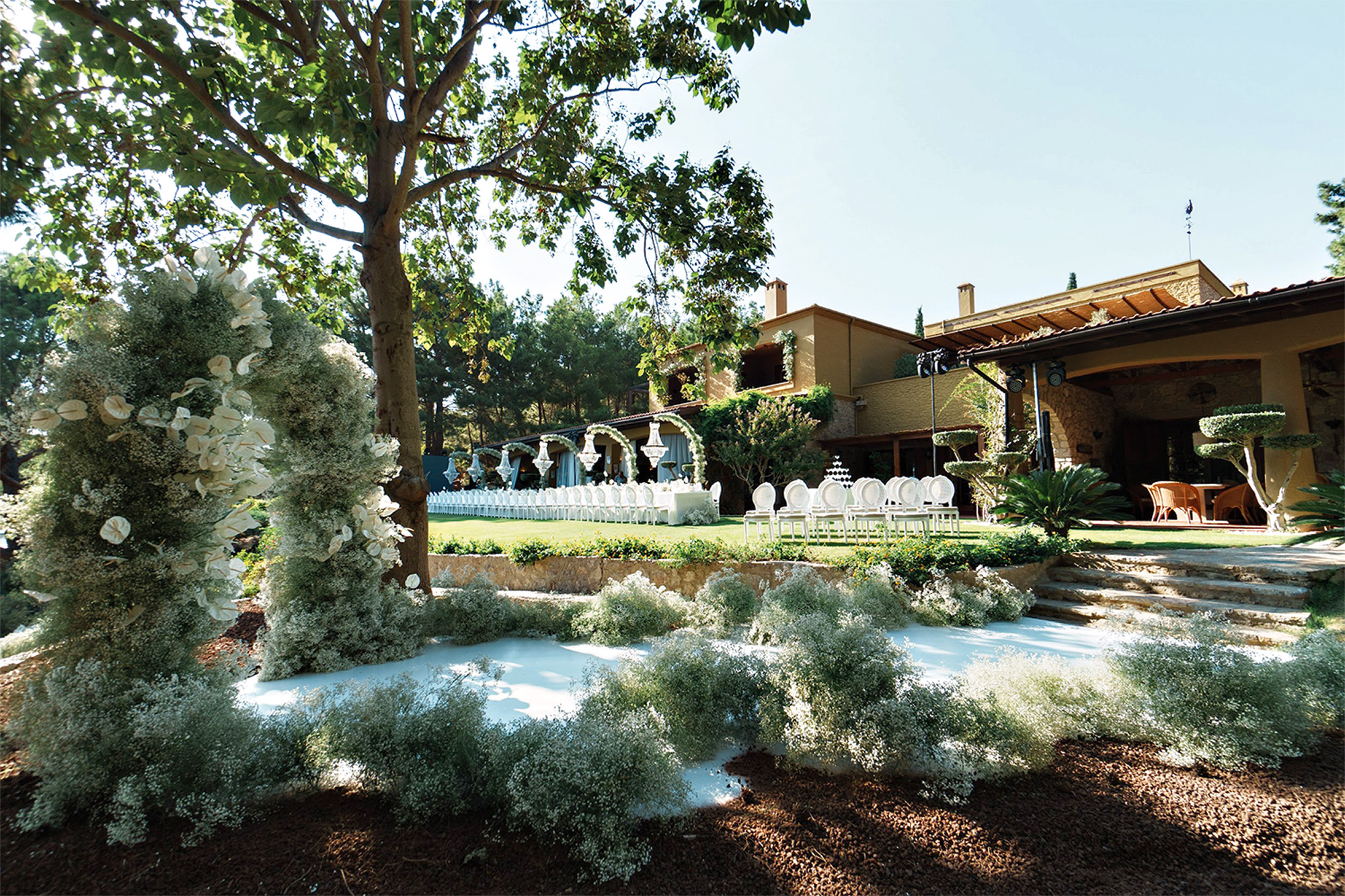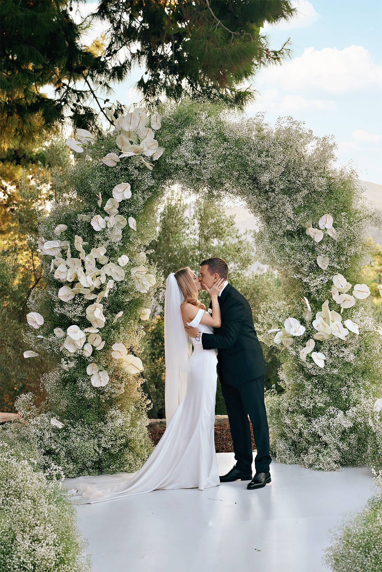 Каждый момент этой невероятной свадьбы в Бодруме был наполнен чудесными деталями. Все гости получили специально напечатанные к празднику газеты с заметками о значимых событиях в жизни пары и веселым кроссвордом, салфетки с надписью «for your happy tears» и кулечки с лепестками роз. А церемония прошла в тени величественных деревьев с потрясающим видом на горы — в таком антураже каждое слово звучало как заклинание.