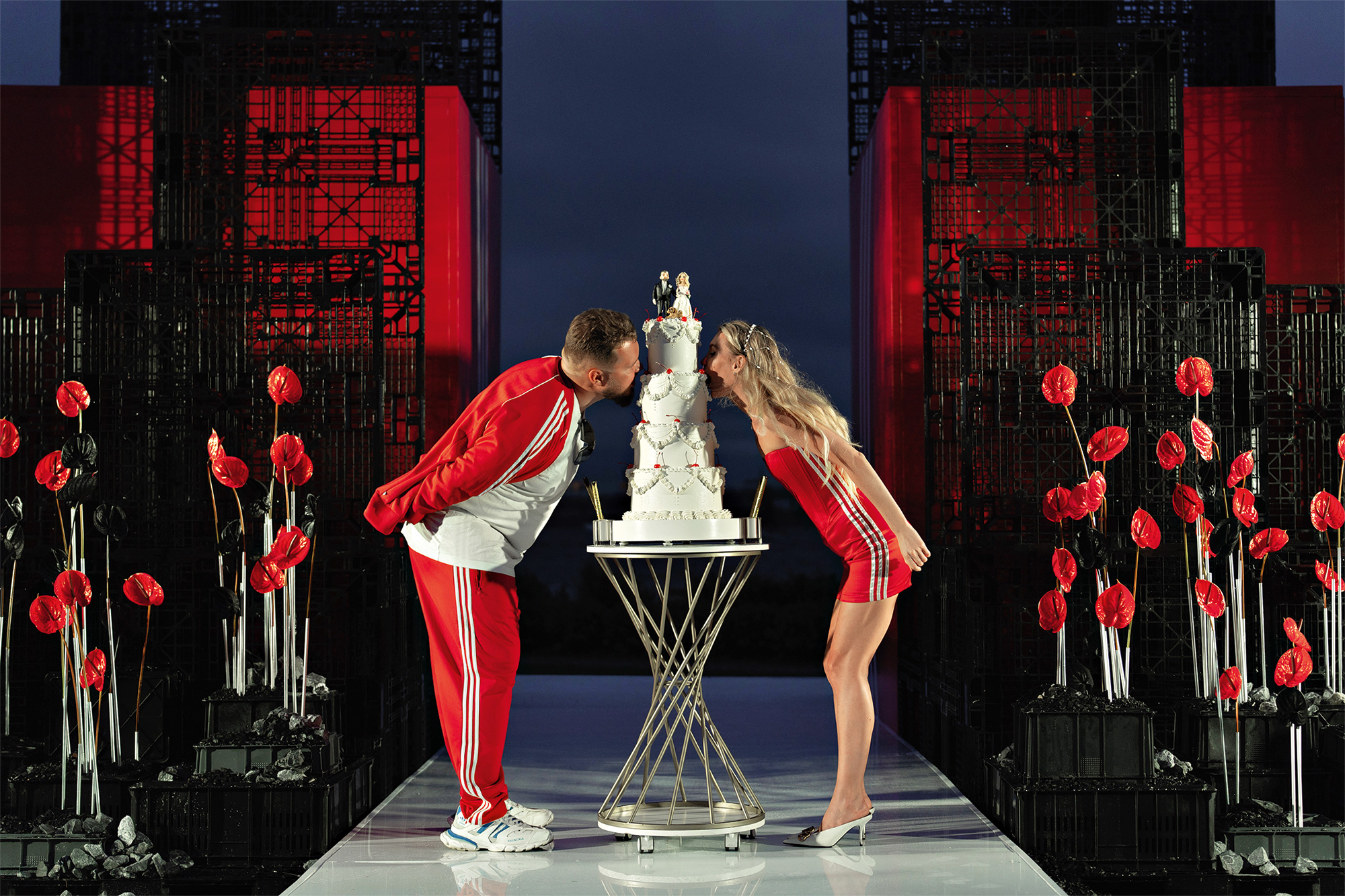 Что если двух любящих людей. и их личные качества представить в виде настоящей скалы? Скалы, разделенной на две составляющие — «Он и Она», которые, соединяясь, создают одно большое чувство. Любовь пары к красному цвету, обуви Adidas и коллекционированию редких моделей кроссовок плюс полоски из ДНК бренда вдохновили команду на создание крепкого образа союза двух людей.